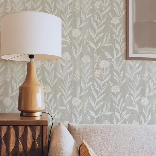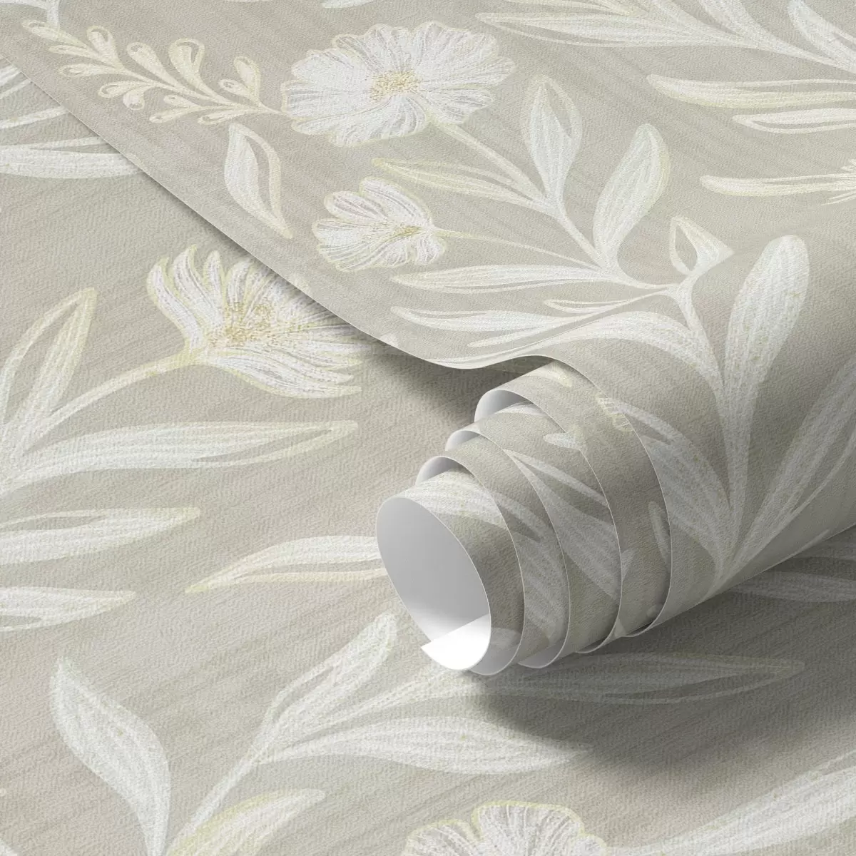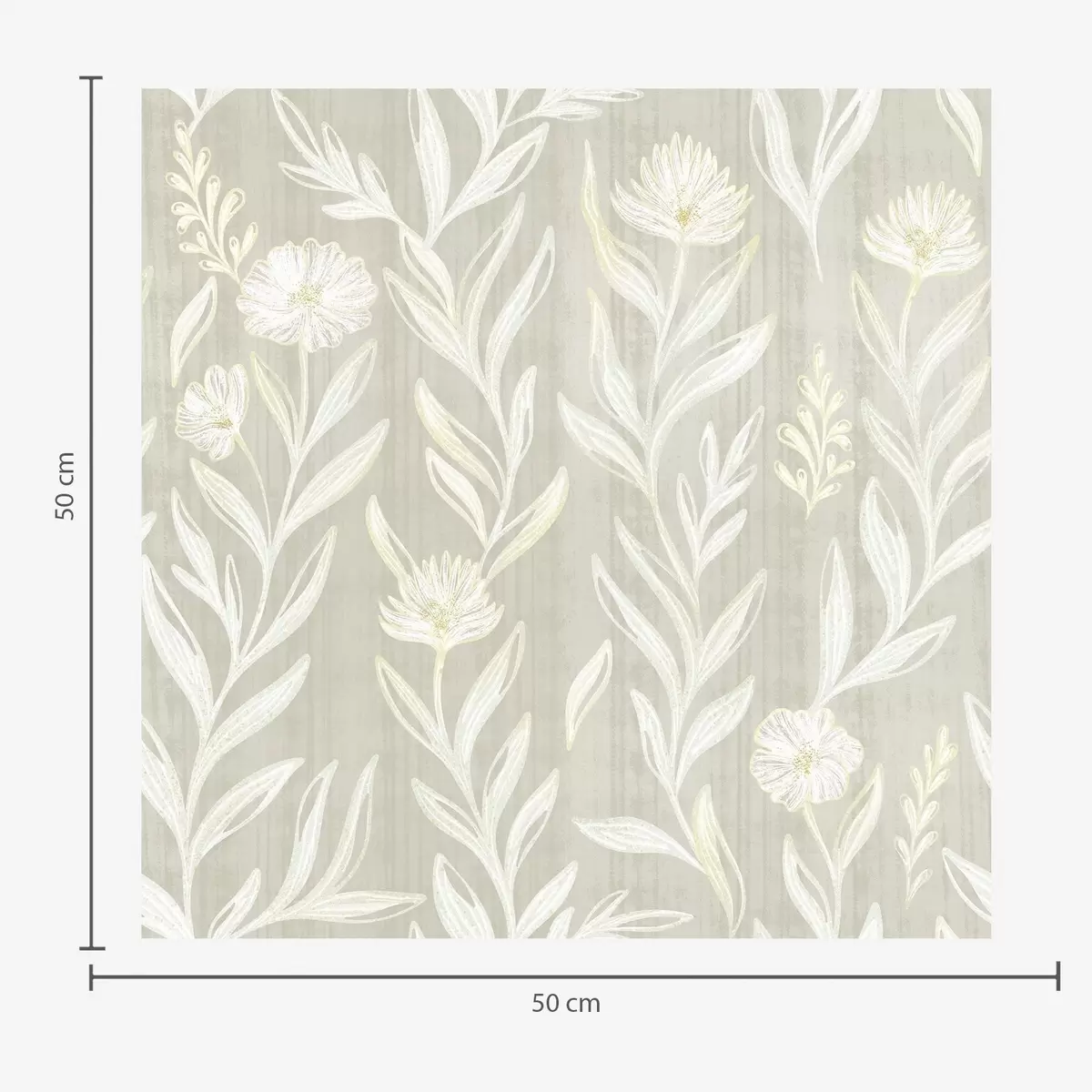 Tapeta Svijetle trave i cvijeće na bež, skiciranim linijama br. a00618