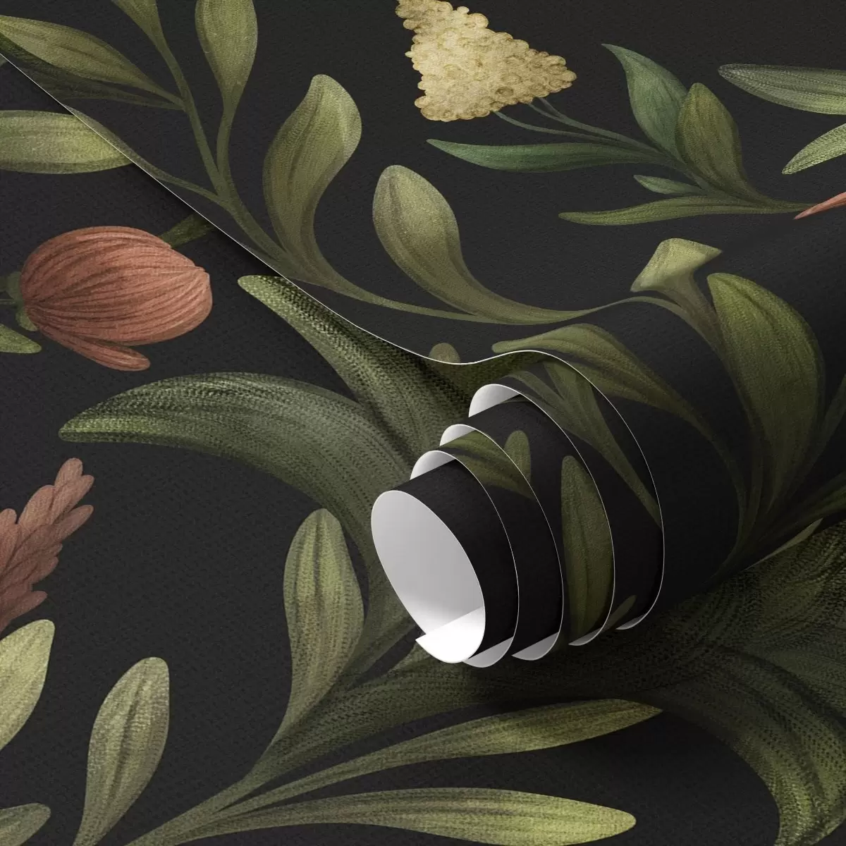 Tapeta Visoke trave i cvjetovi na crnom, detaljnom otisku br. a00620