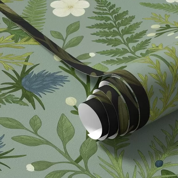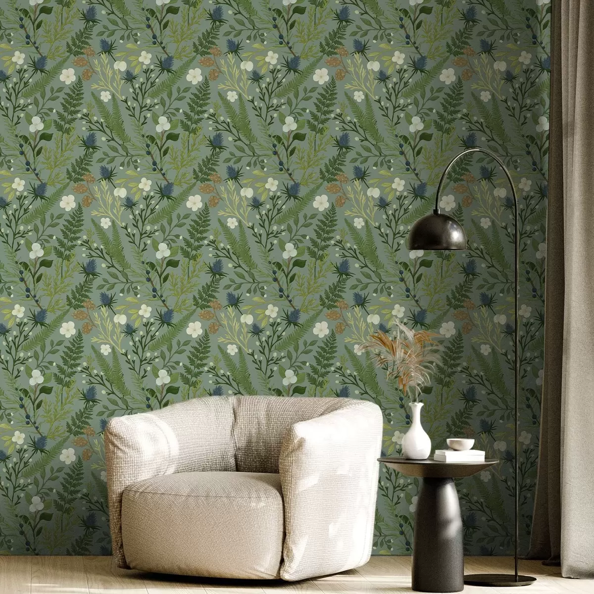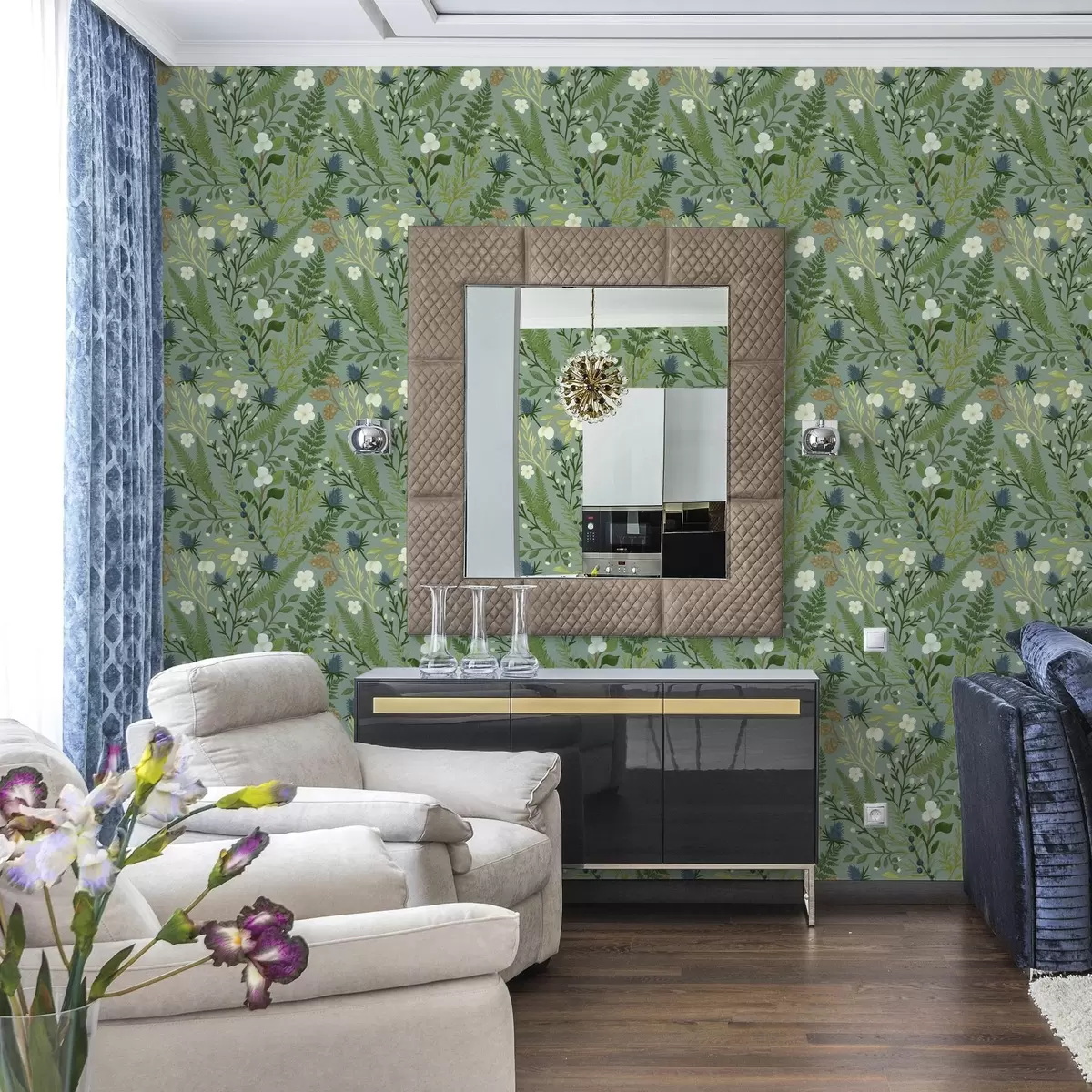 Tapeta Šumsko bilje, cikorija i bobice na pozadini boje mente br. a00621v1