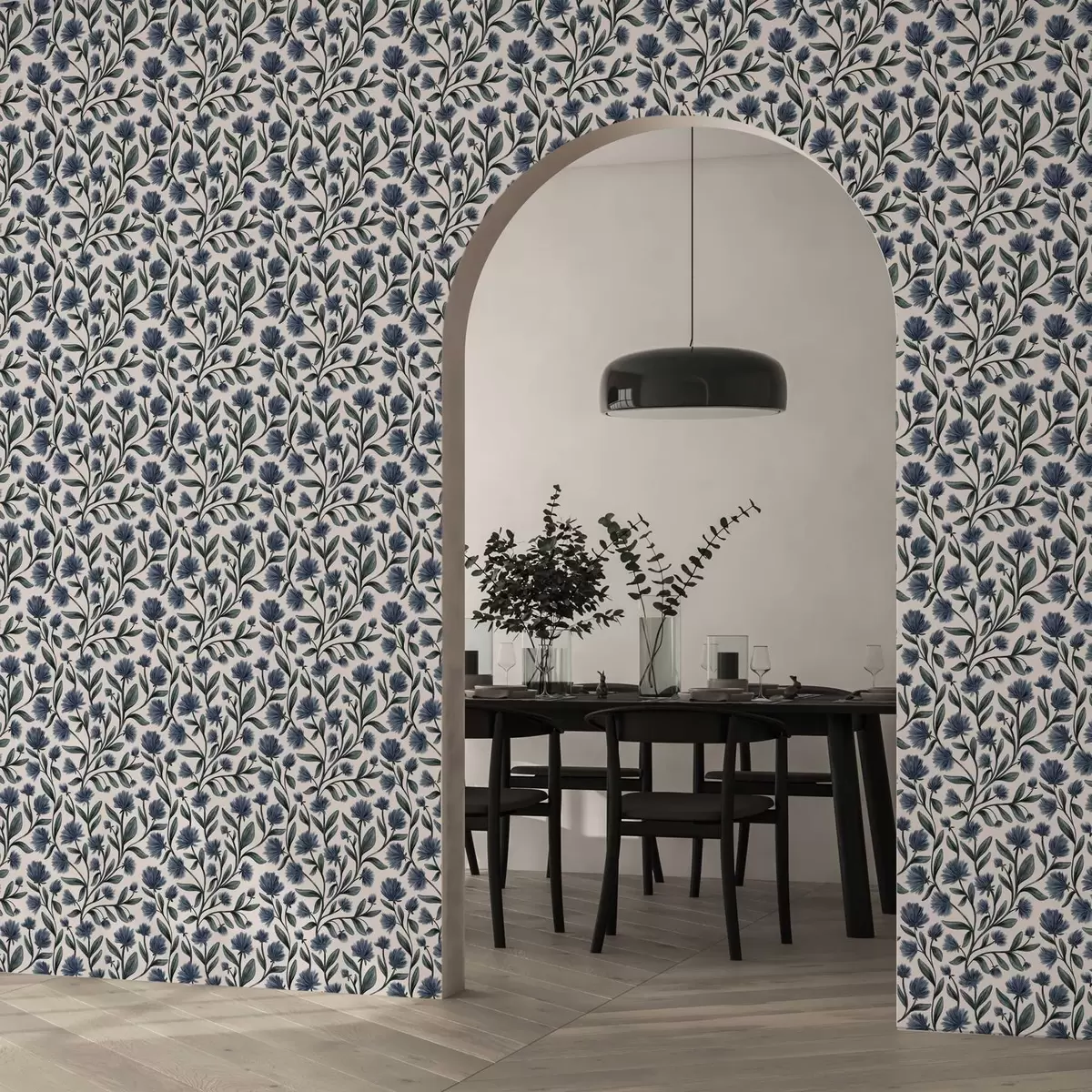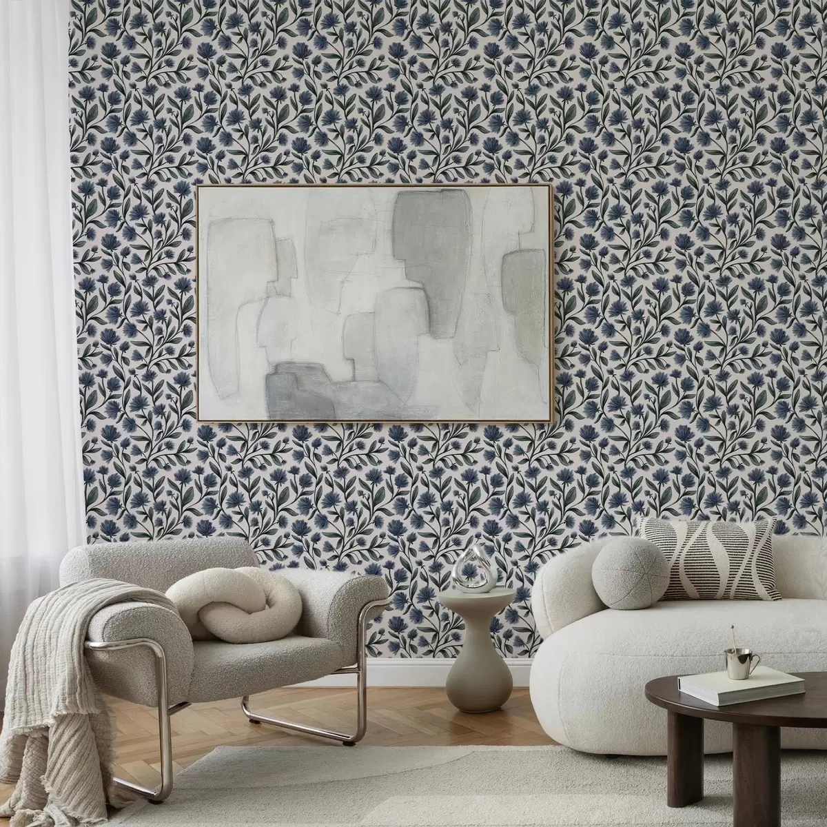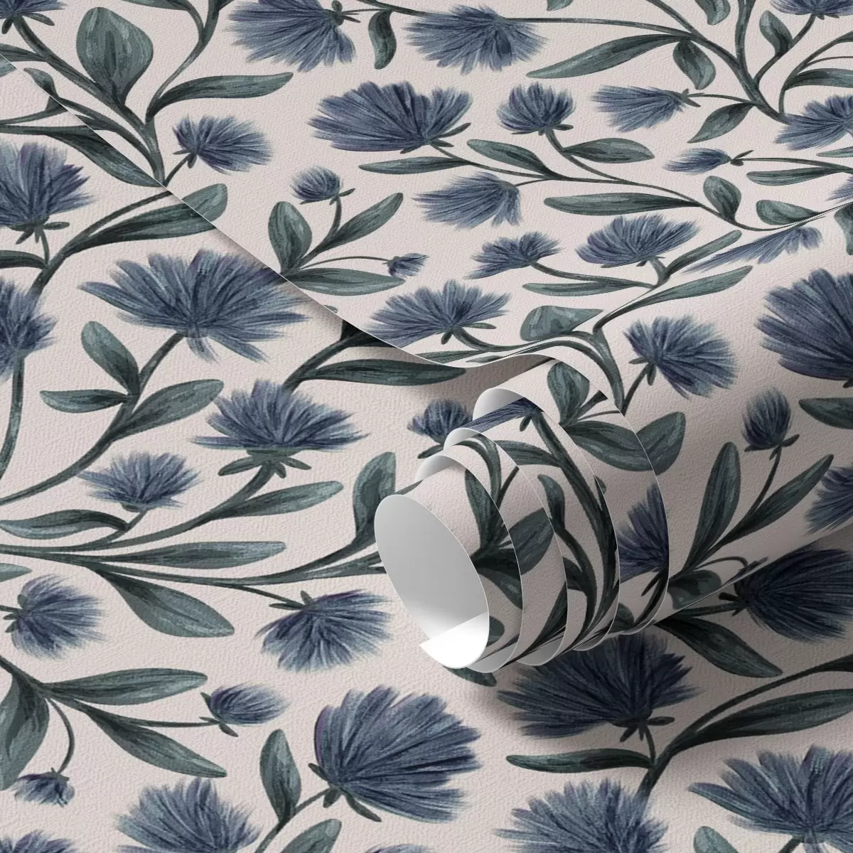 Tapeta Divlje cvijeće u plavo-zelenoj paleti na krem pozadini br. a00623v2