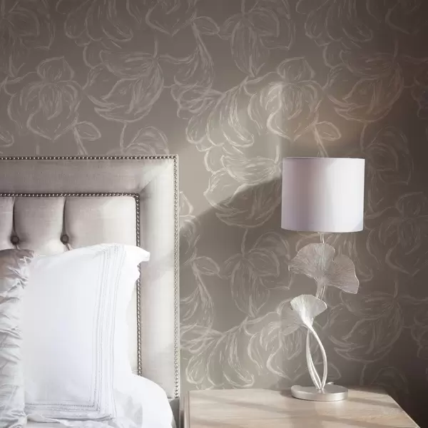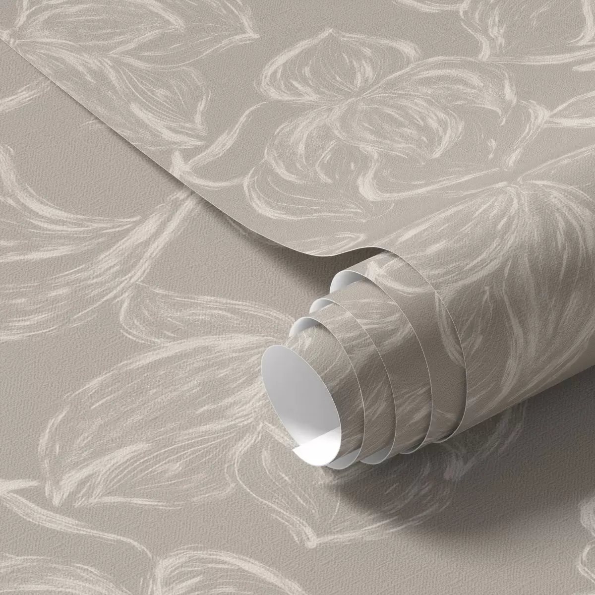 Tapeta Cvijeće s krem obrisima na toploj taupe pozadini br. a00625v2