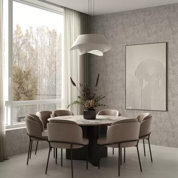 Tapeta Cvijeće s krem obrisima na toploj taupe pozadini br. a00625v2