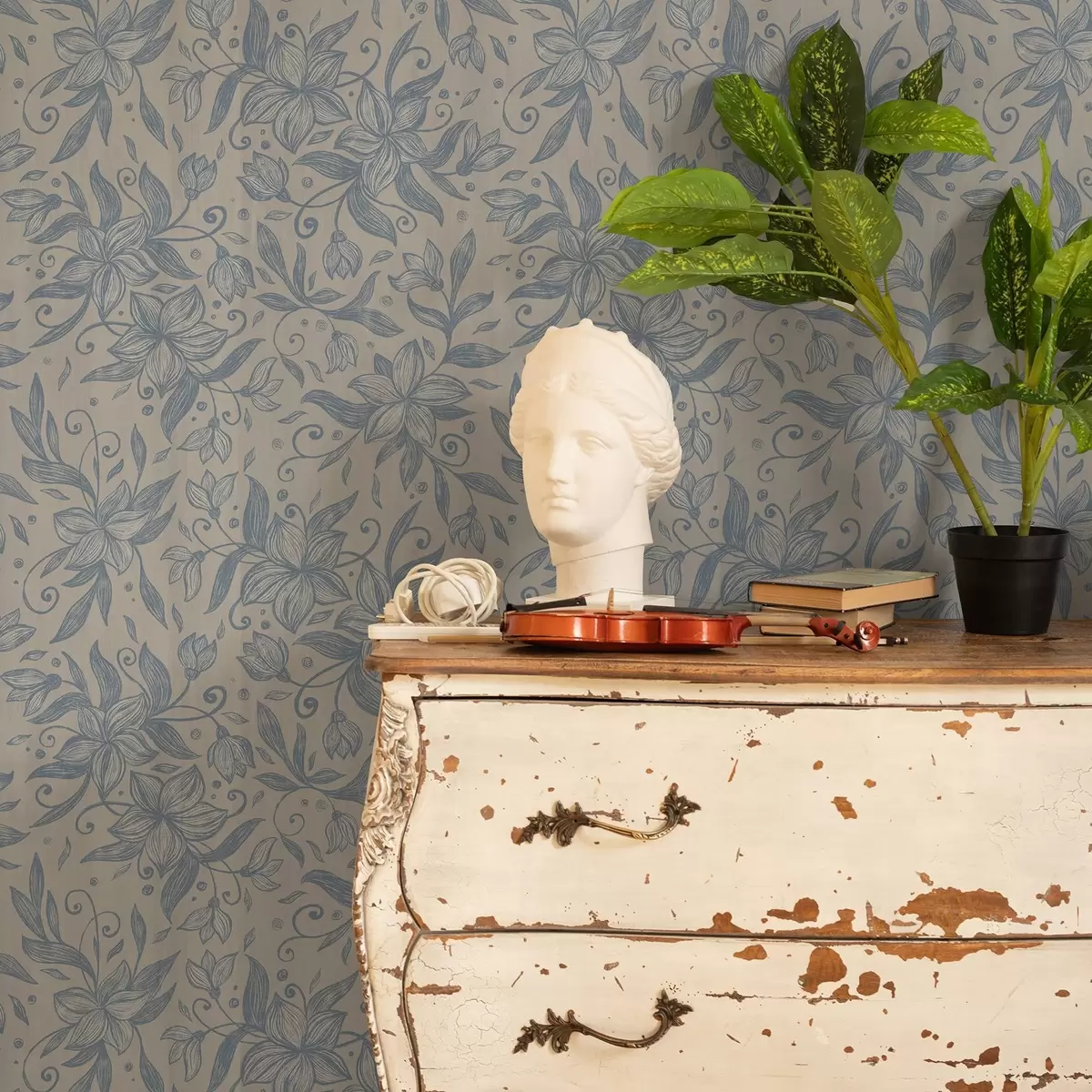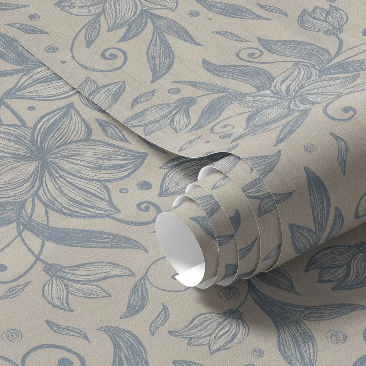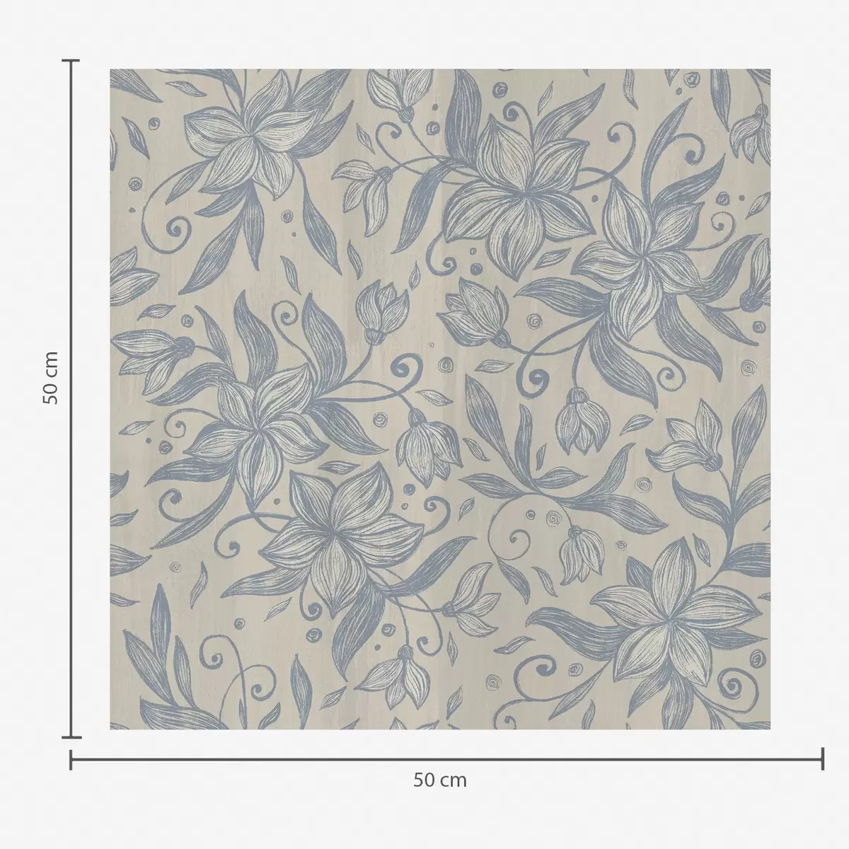 Tapeta Plavi linearni cvjetni uzorak na toploj bež boji br. a00630v2
