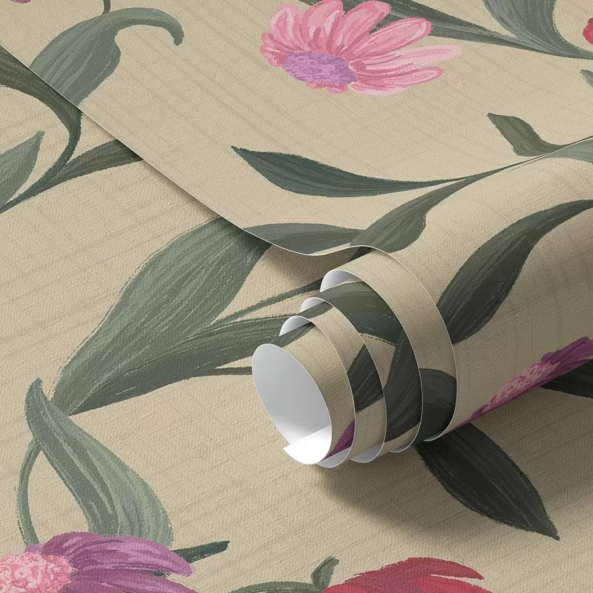 Tapeta Ružičasto-crveno cvijeće na bež pozadini, ručno crtana tekstura br. a00631