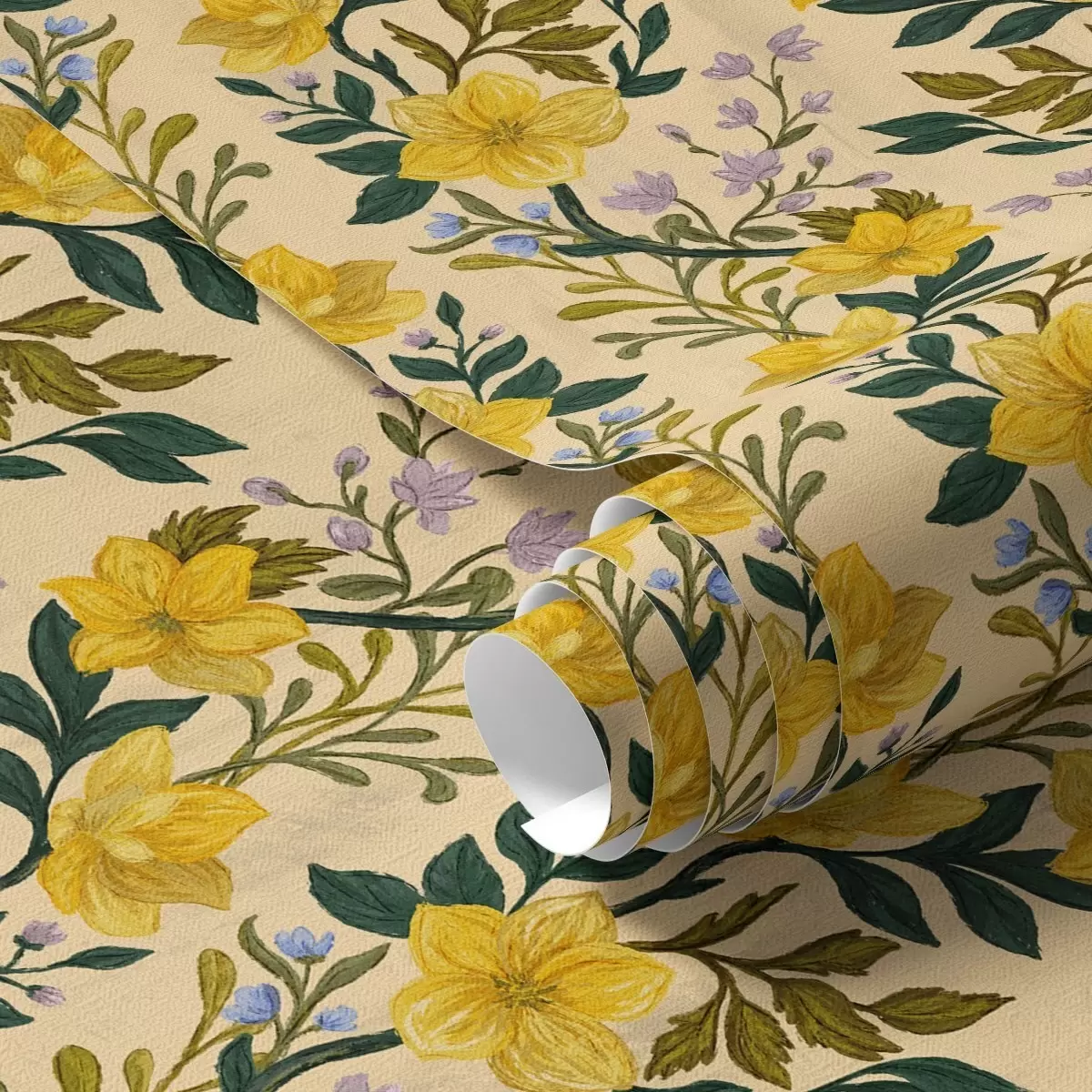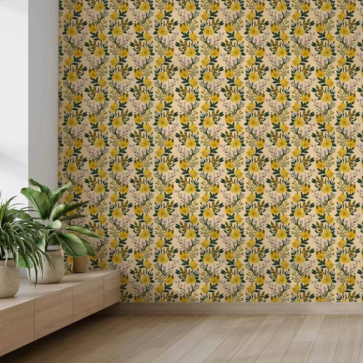 Tapeta Žuto cvijeće u vertikalnim vijencima na krem pozadini br. a00632