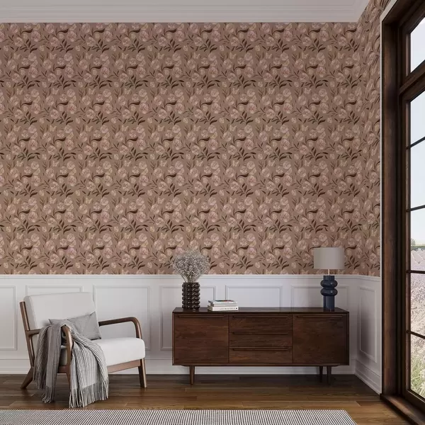 Tapeta Ružičasto cvijeće i leptiri na toploj smeđoj pozadini br. a00633v1