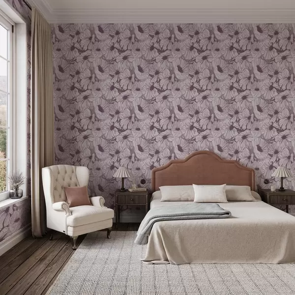 Tapeta Linearno cvijeće u hladnoj lila-ružičastoj paleti br. a00636v1