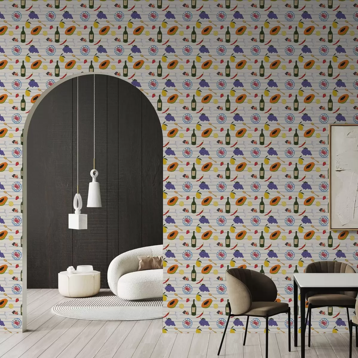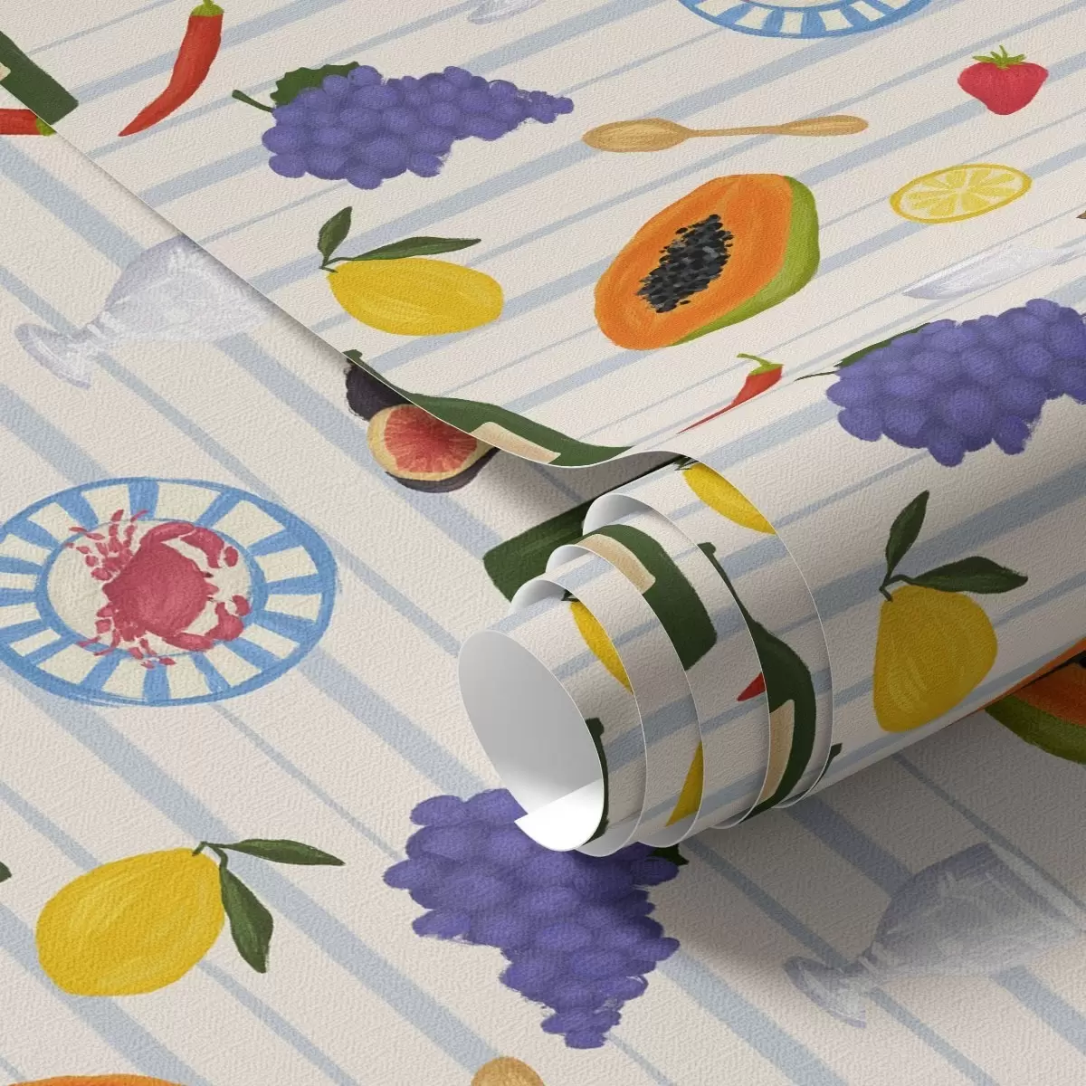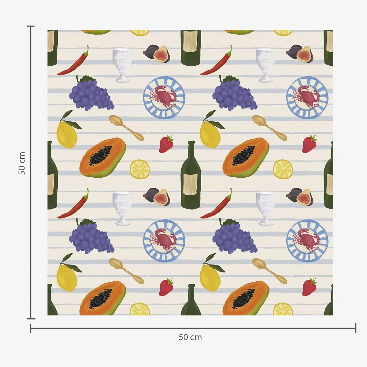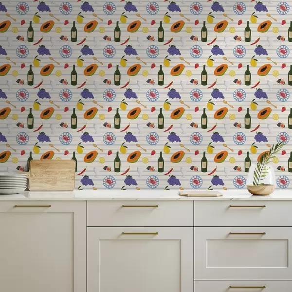 Tapeta Kuhinjski otisak s voćem, čašama i tanjurima br. a00638
