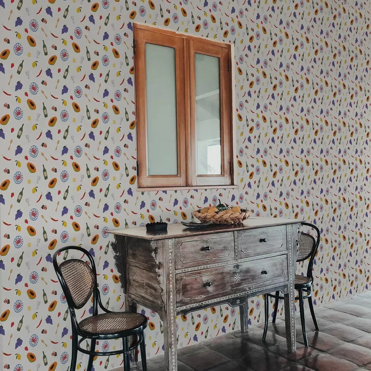 Tapeta Aranžirano voće, vino i začini na svijetloj pozadini br. a00639