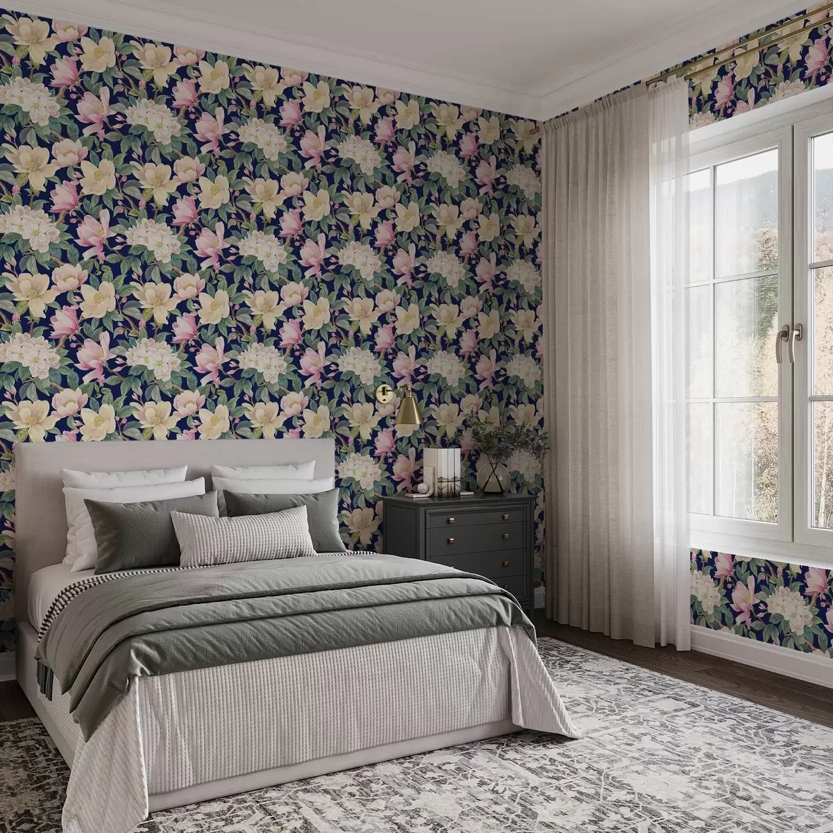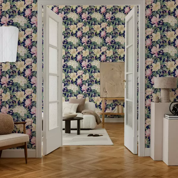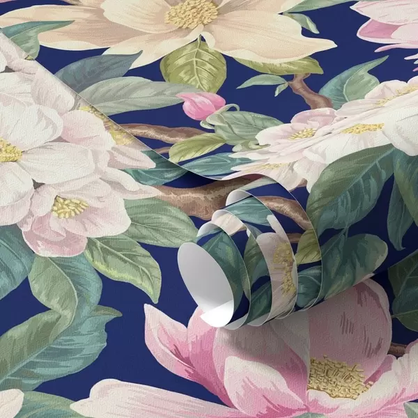 Tapeta Magnolije i pupoljci na tamnoplavoj pozadini br. a00644v1