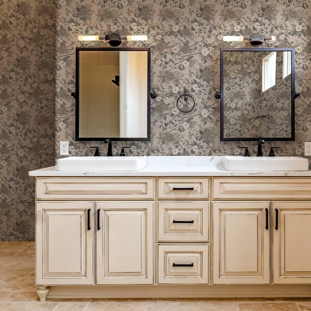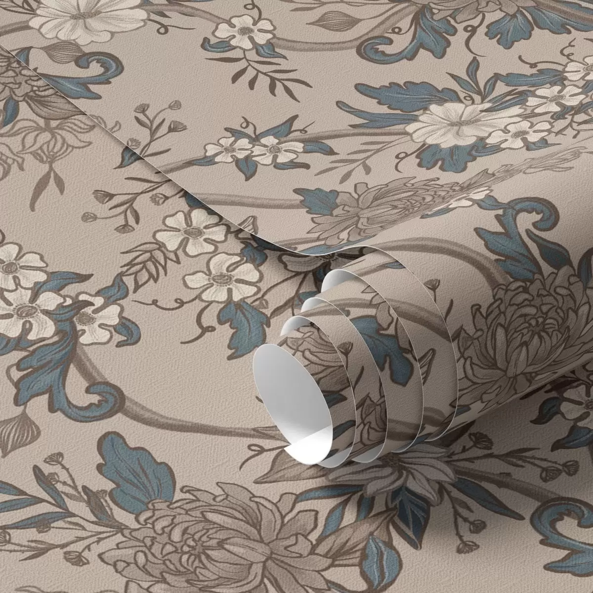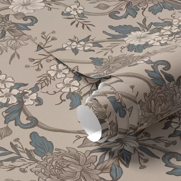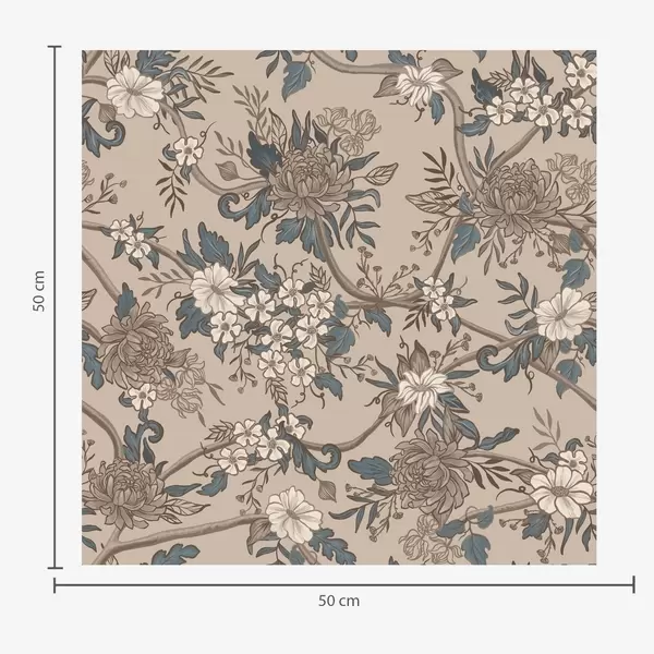 Tapeta Veliko cvijeće s uzorkovanim listovima na toploj bež pozadini br. a00649