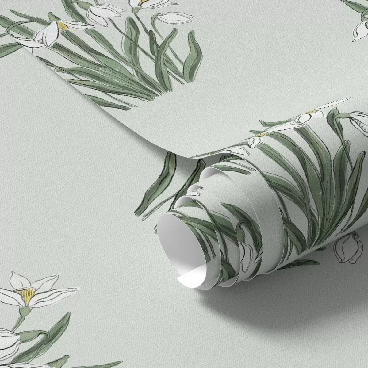 Tapeta Visibabe sa zelenim lišćem na pastelno zelenoj pozadini br. a00651