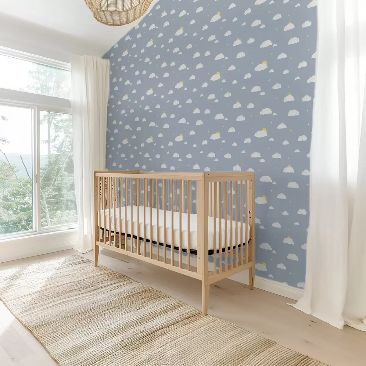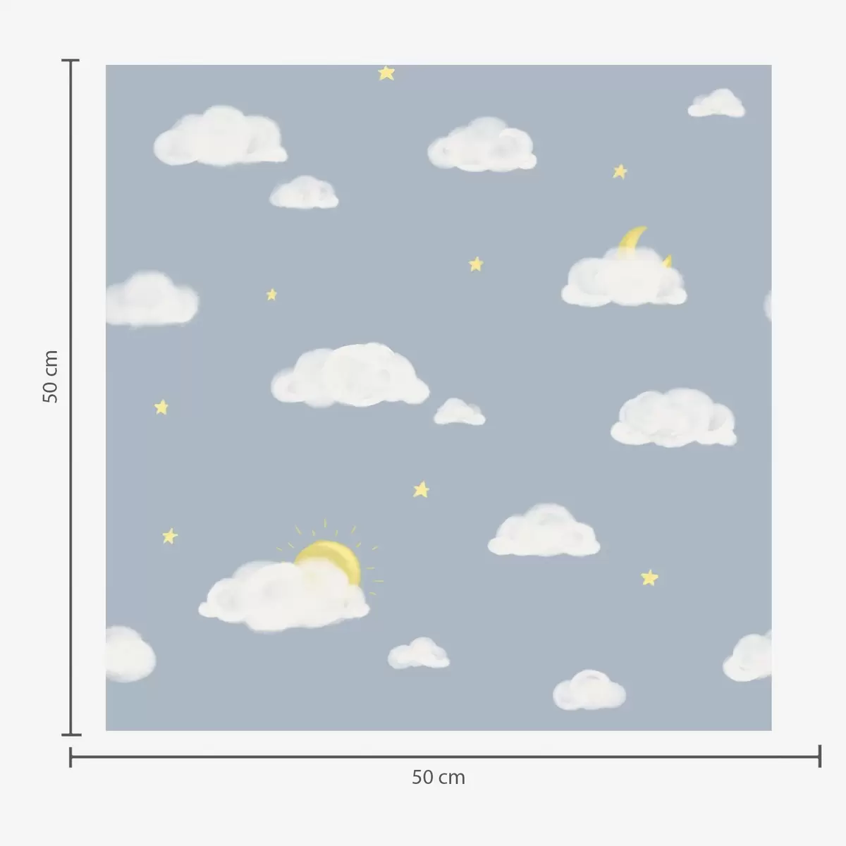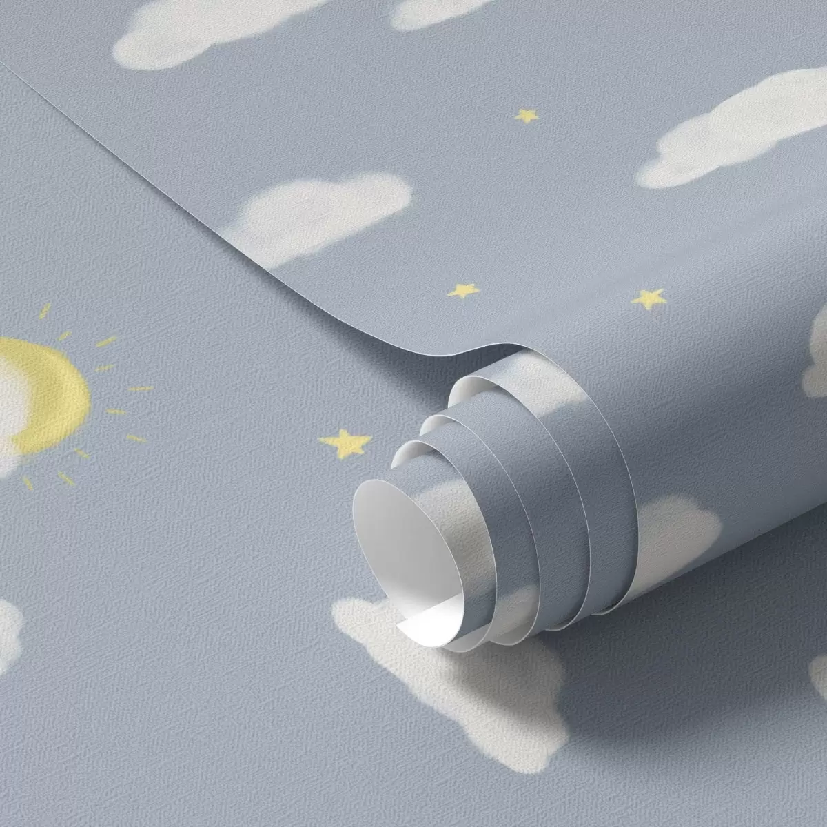 Tapeta Meki oblaci, zvijezde i sunce na plavoj pozadini br. a00652