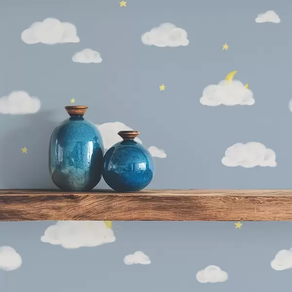 Tapeta Meki oblaci, zvijezde i sunce na plavoj pozadini br. a00652