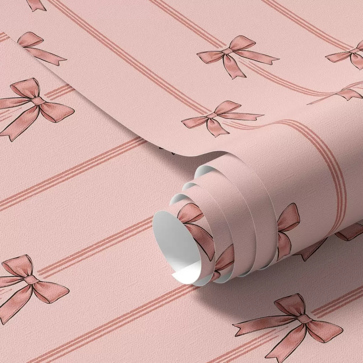Tapeta Vertikalne vrpce s mašnama, koraljno ružičasta pozadina br. a00653v3