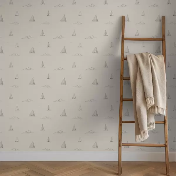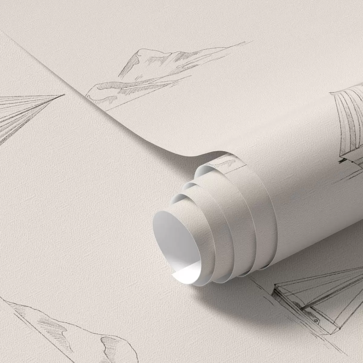 Tapeta Skicirajte jahte i otoke, topla kremasta pozadina br. a00654v1