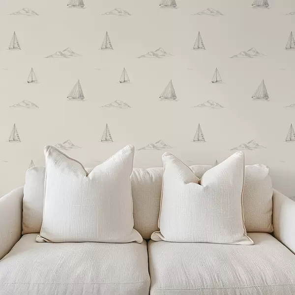 Tapeta Skicirajte jahte i otoke, topla kremasta pozadina br. a00654v1