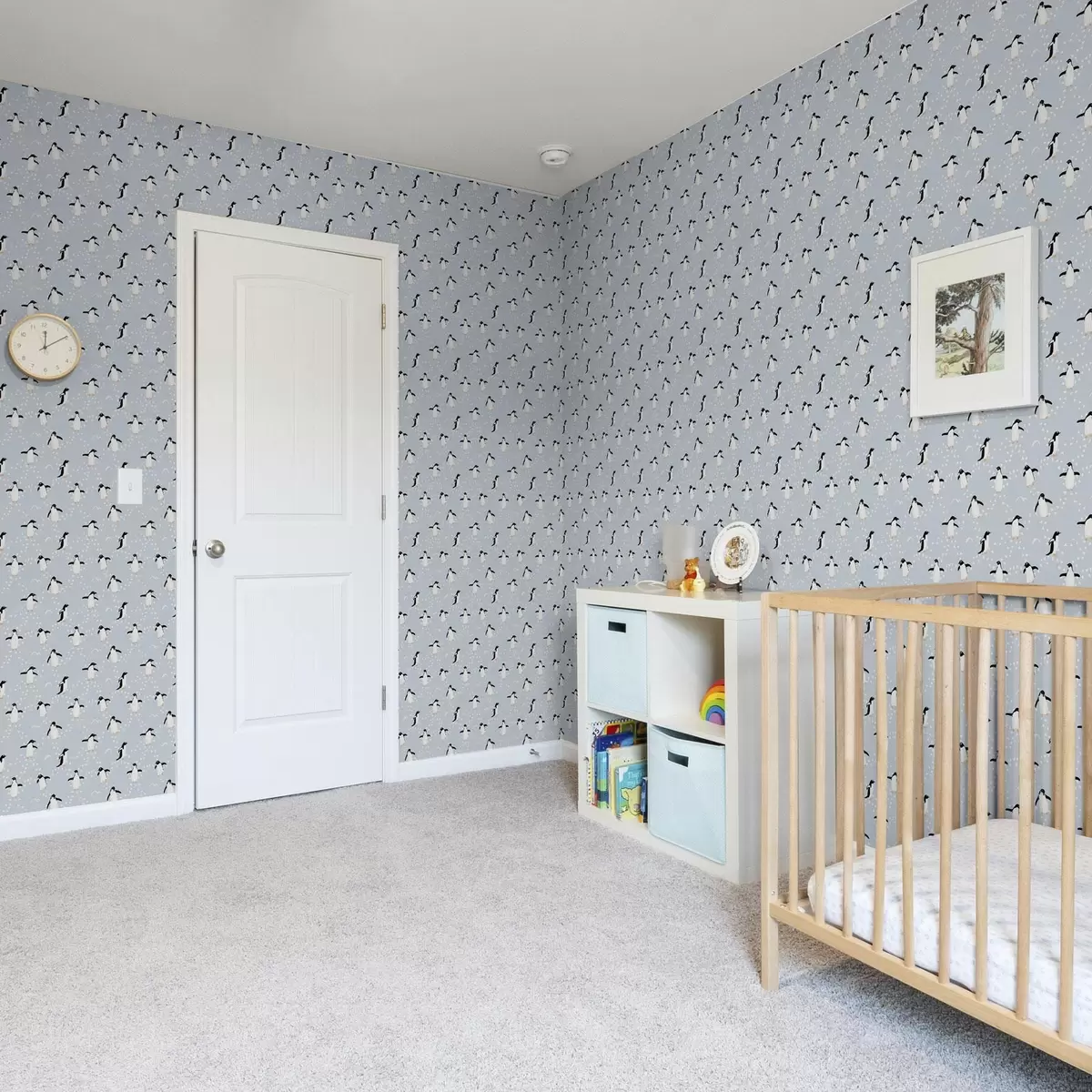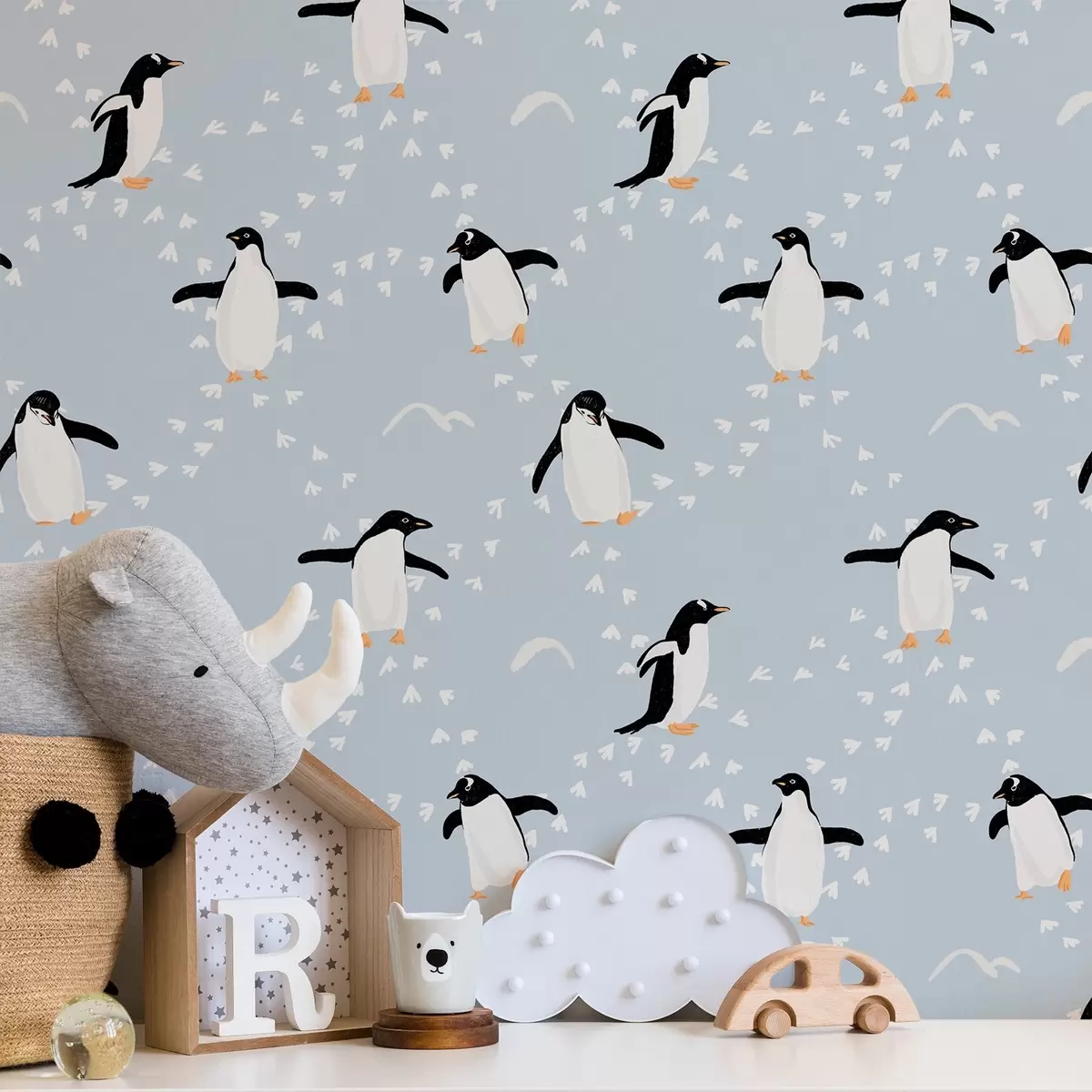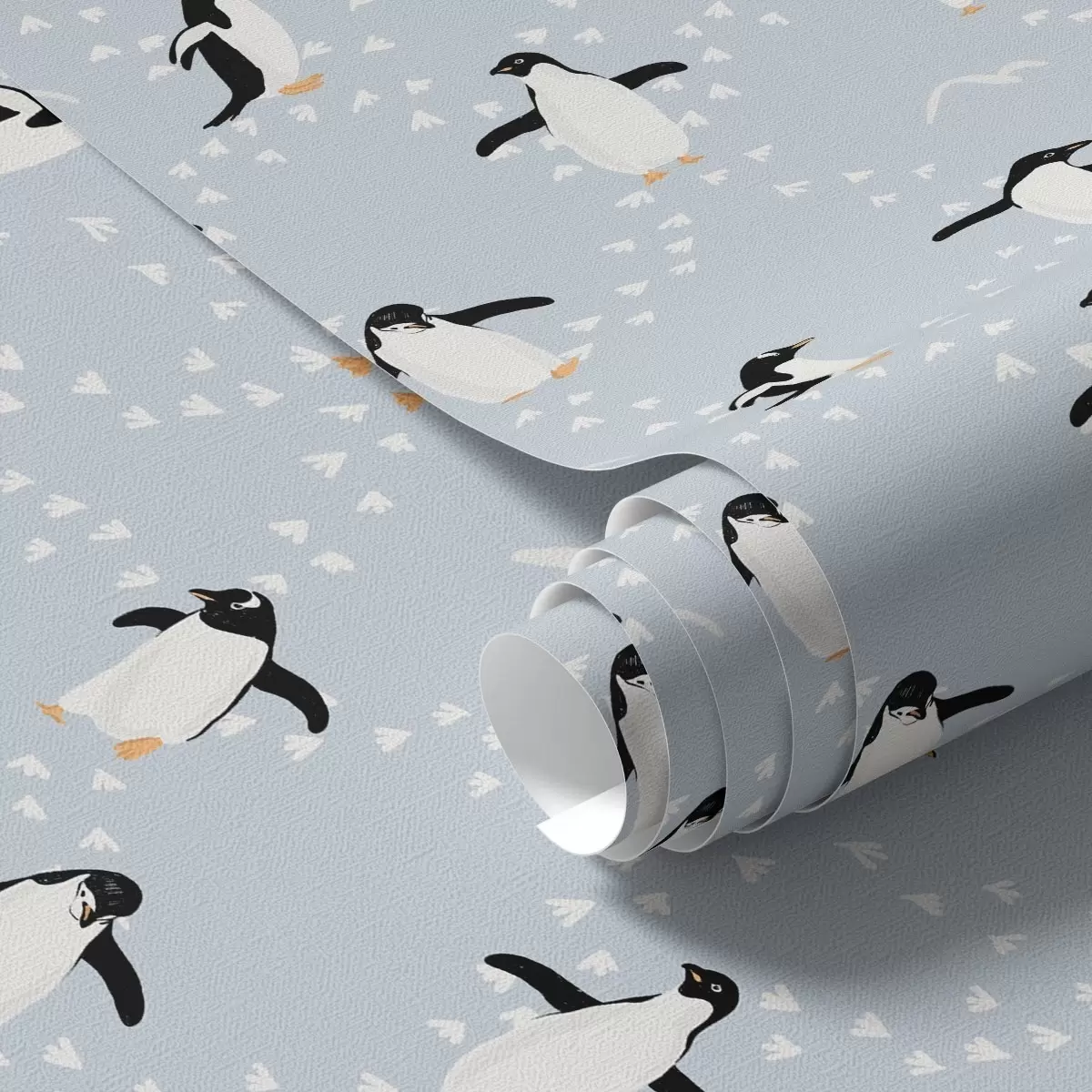 Tapeta Pingvini na svijetloplavoj, ritam otisaka stopala br. a00655v2