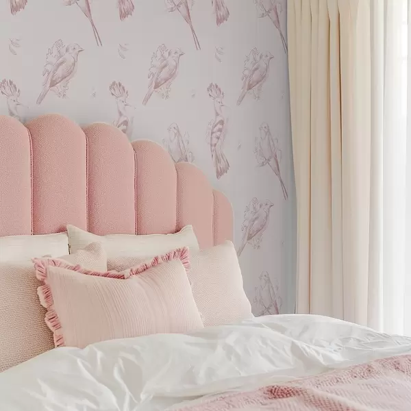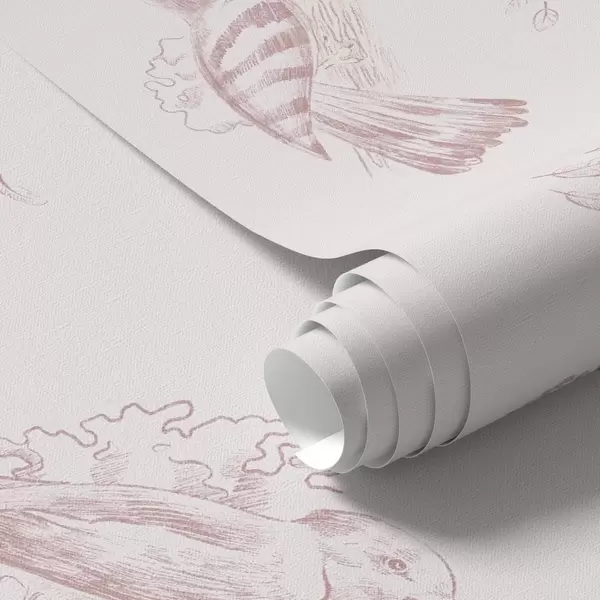 Tapeta Toile za ptice: skice ptica, nježno ružičasta pozadina br. a00656