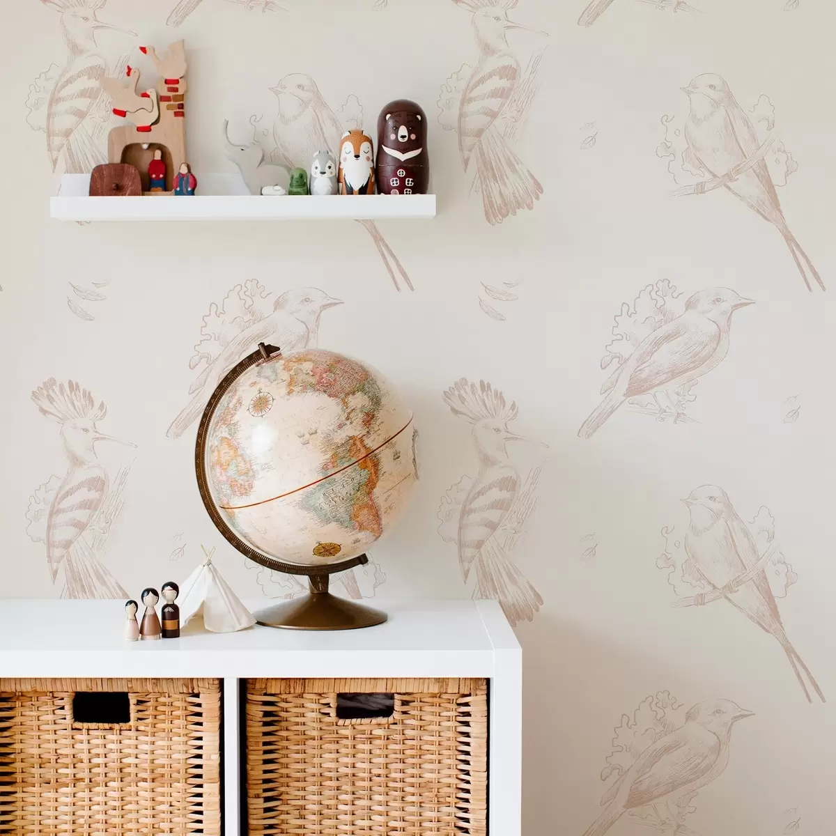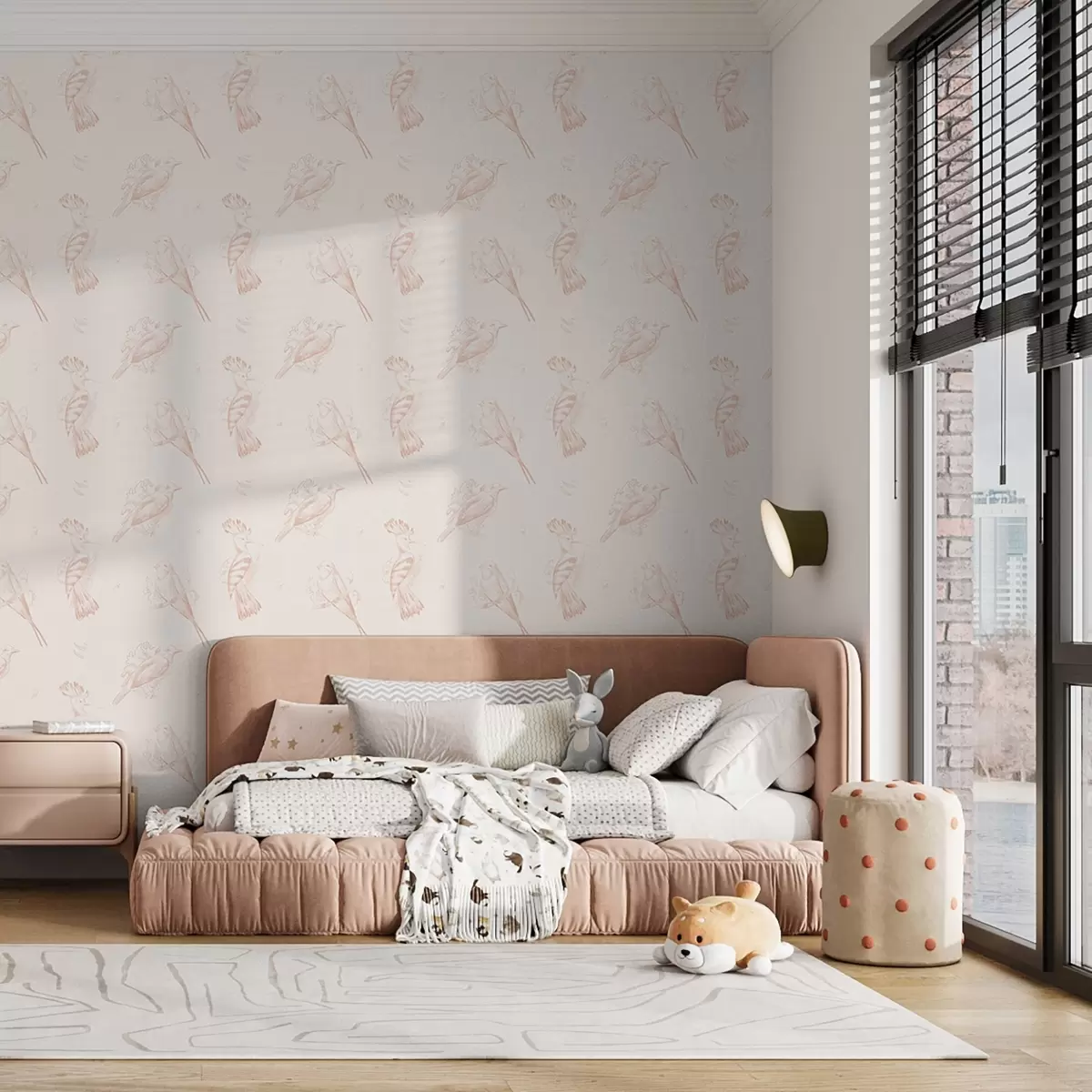 Tapeta Toile za ptice: skicirajte ptice na breskvasto-kremastoj podlozi br. a00656v2
