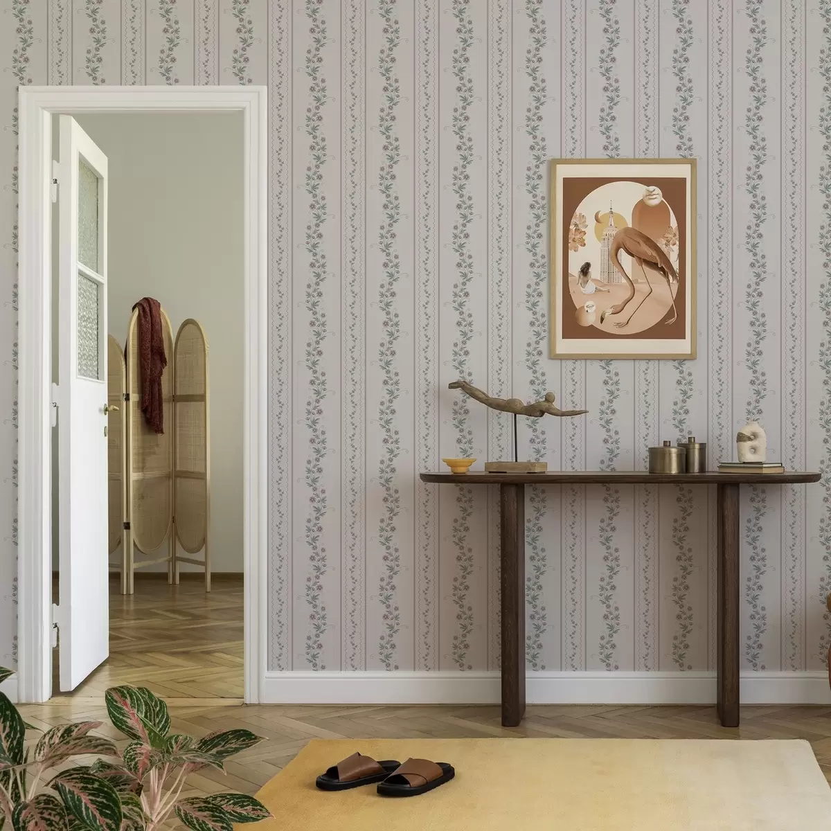 Tapeta Nježne pruge s cvjetovima lavande, vintage br. a00671