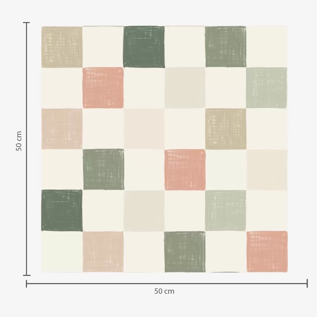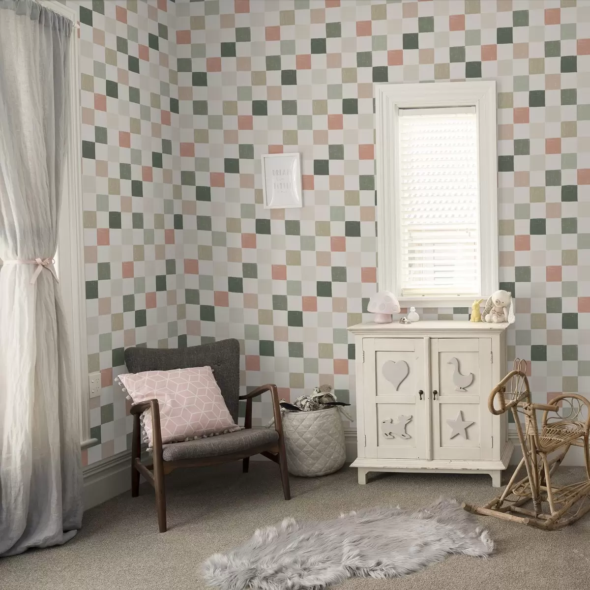 Tapeta Mekani karirani uzorak u pastelnim zelenim, ružičastim i bež tonovima br. a00676
