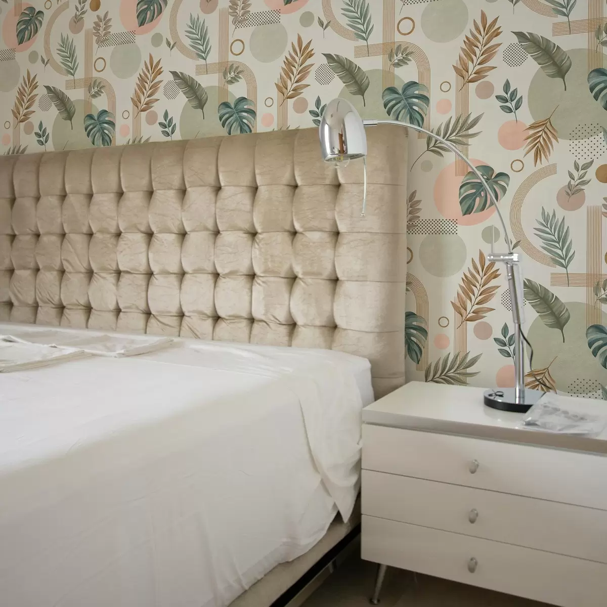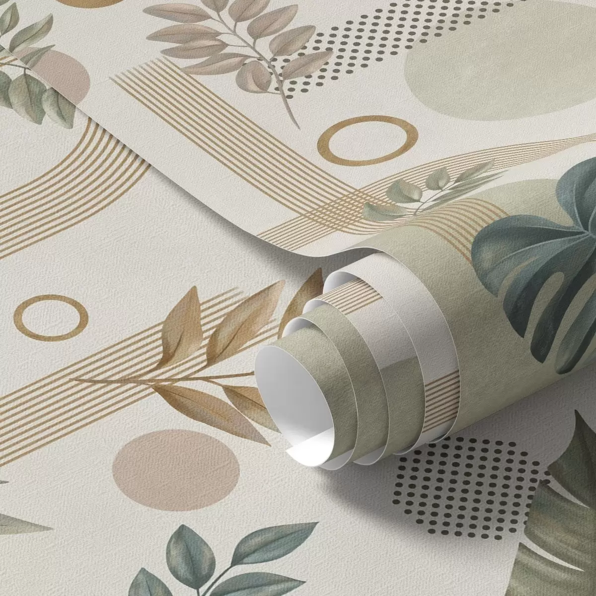 Tapeta Lišće i geometrijski oblici u mirnim toplim nijansama br. a00677