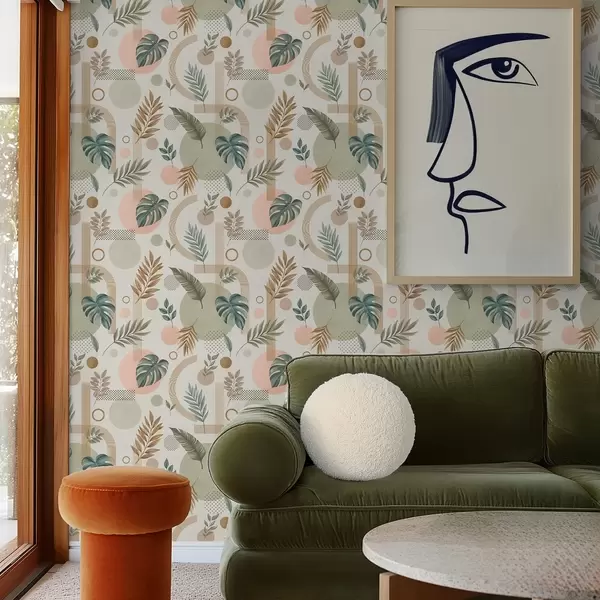 Tapeta Lišće i geometrijski oblici u mirnim toplim nijansama br. a00677
