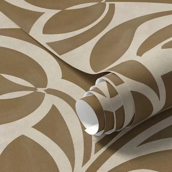 Tapeta Geometrijske siluete lišća, karamelno smeđe na bež br. a00679