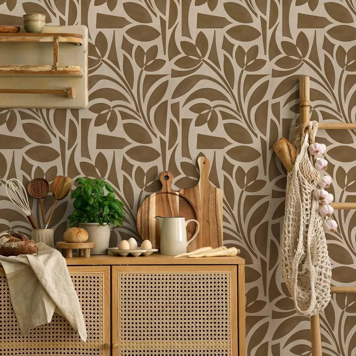 Tapeta Geometrijske siluete lišća, karamelno smeđe na bež br. a00679