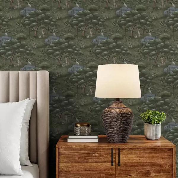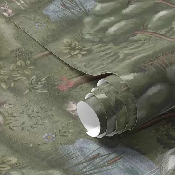 Tapeta Šumska čistina s lancima, zečevima i čapljama br. a00680