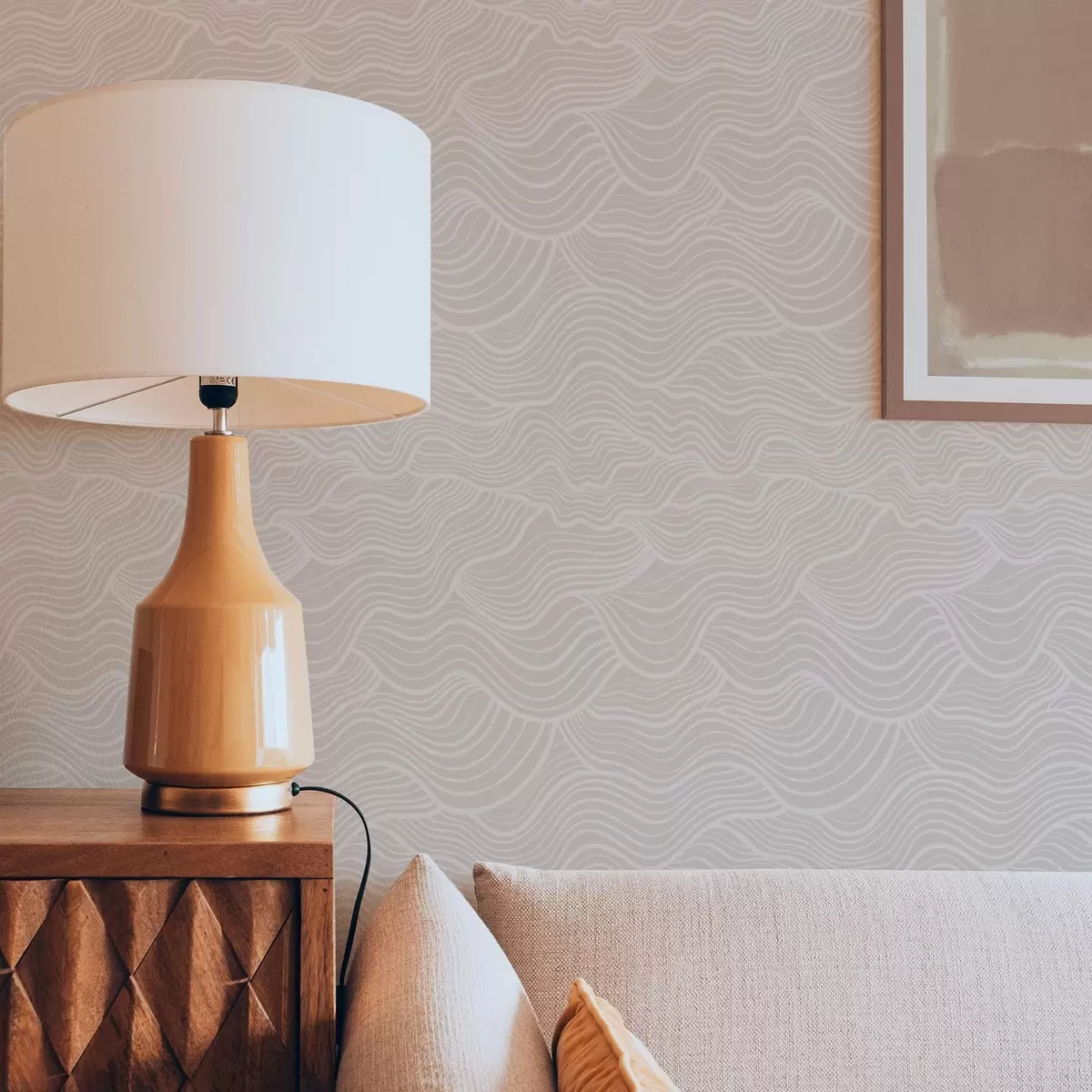 Tapeta Valovite linije u tonu na toploj bež boji br. a00681v1