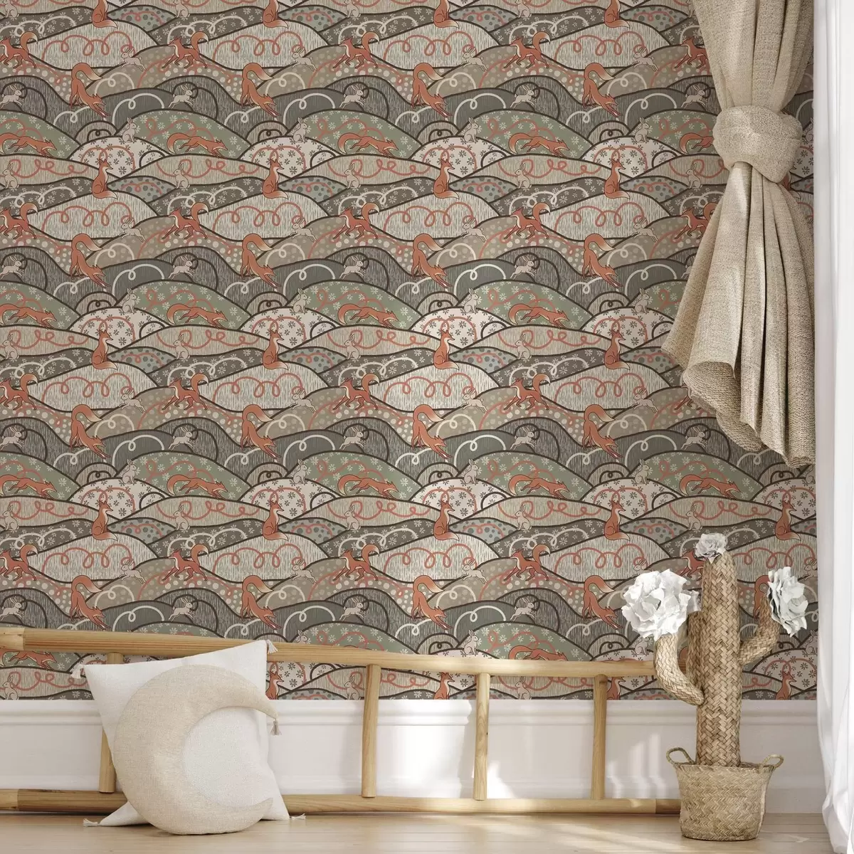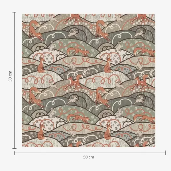 Tapeta Lisice i zečevi na valovitim brdima, retro uzorak br. a00690