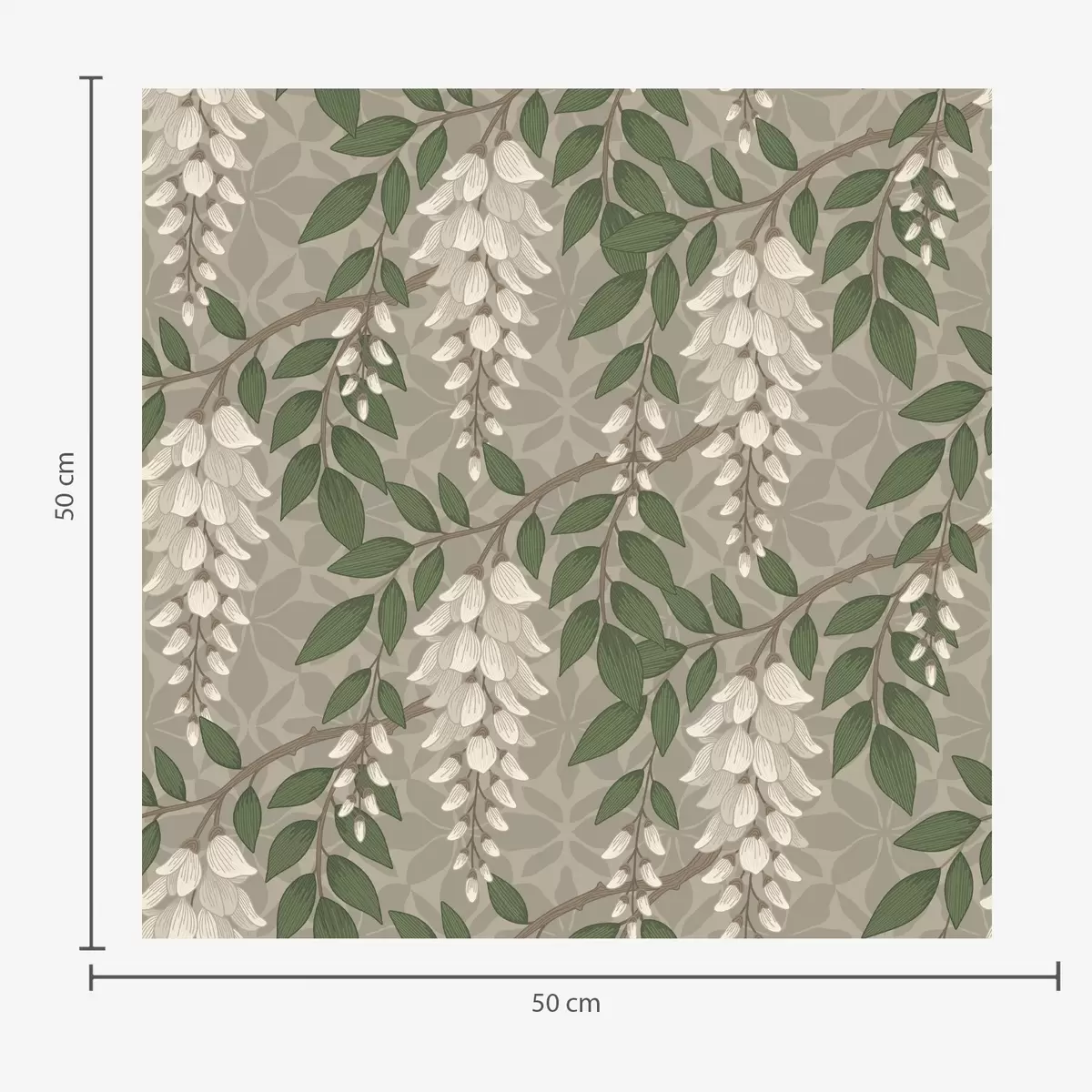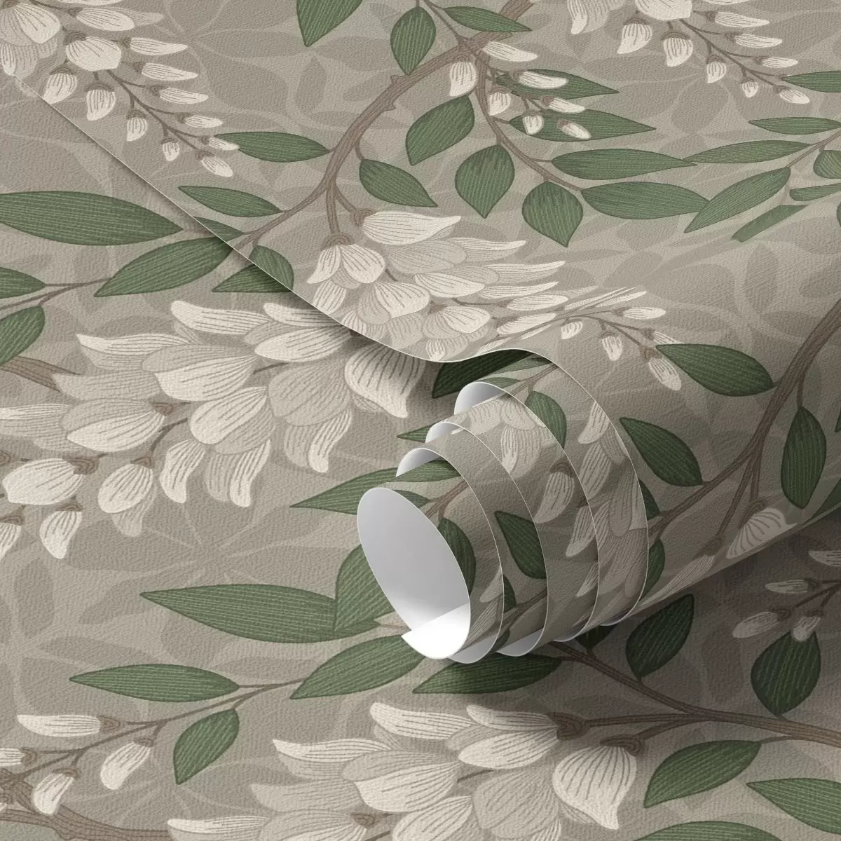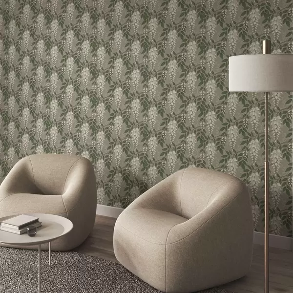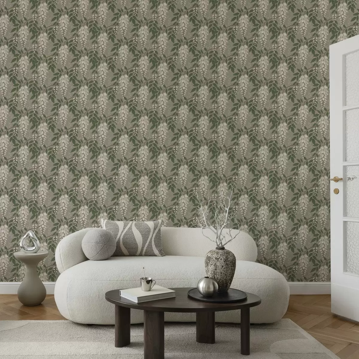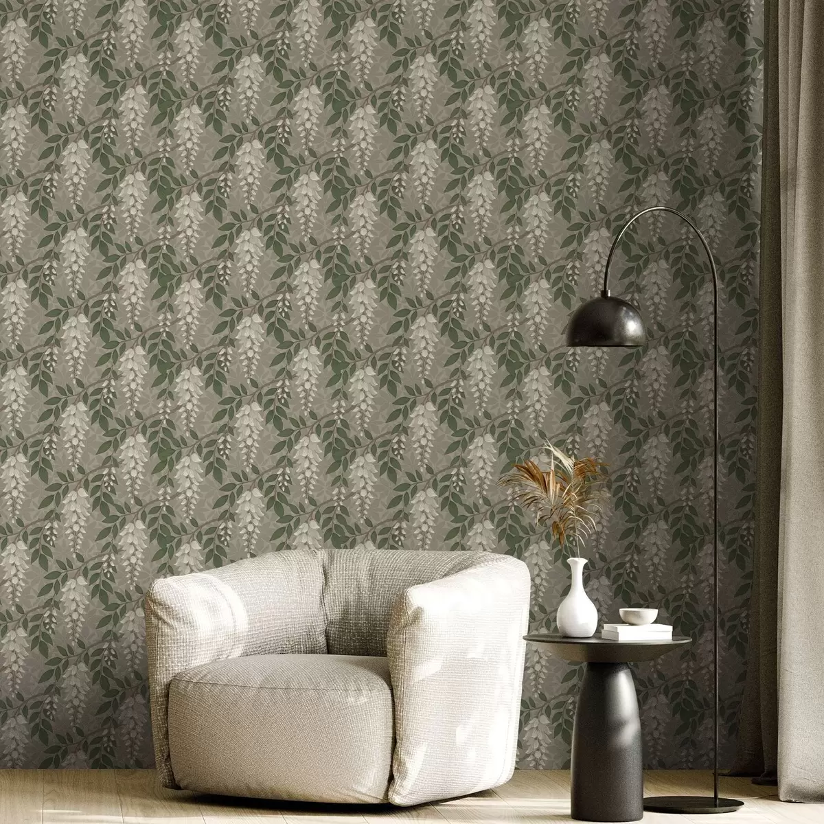 Tapeta Svijetla glicinija na sivo-maslinastoj pozadini, kaskadni grozdovi br. a00694
