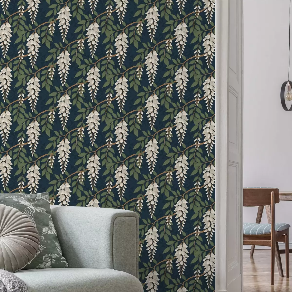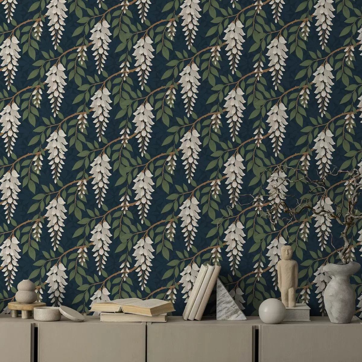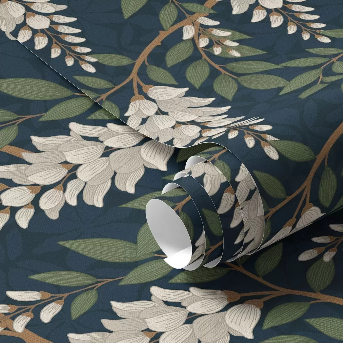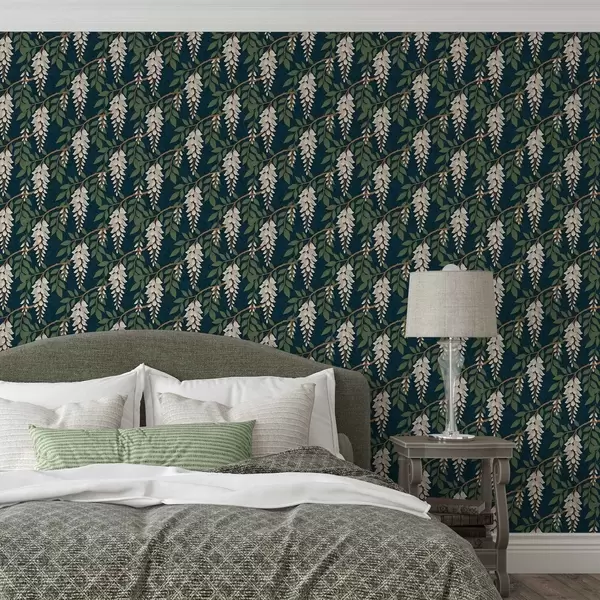 Tapeta Bjelokostna glicinija na tamnoplavoj pozadini br. a00694v1