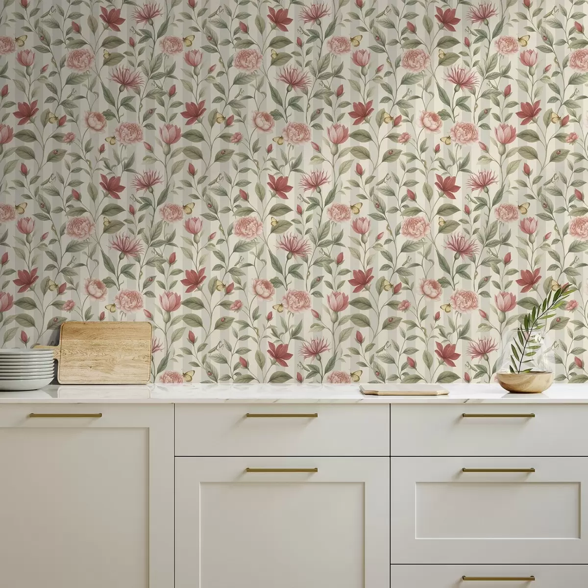 Tapeta Cvjetne stabljike s leptirima na svijetloj pozadini br. a00698