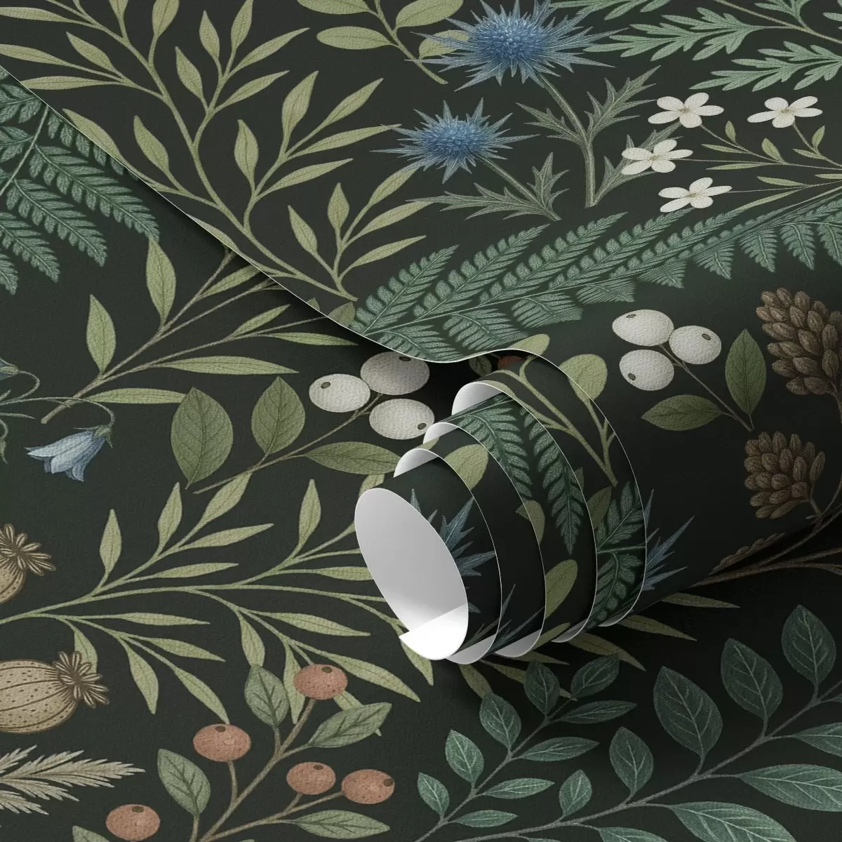 Tapeta Poljske trave, bobice i sjemenke na tamnoj pozadini br. a00706