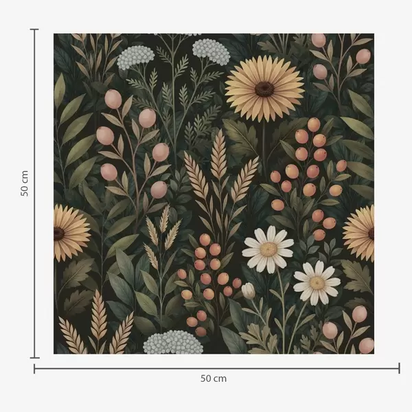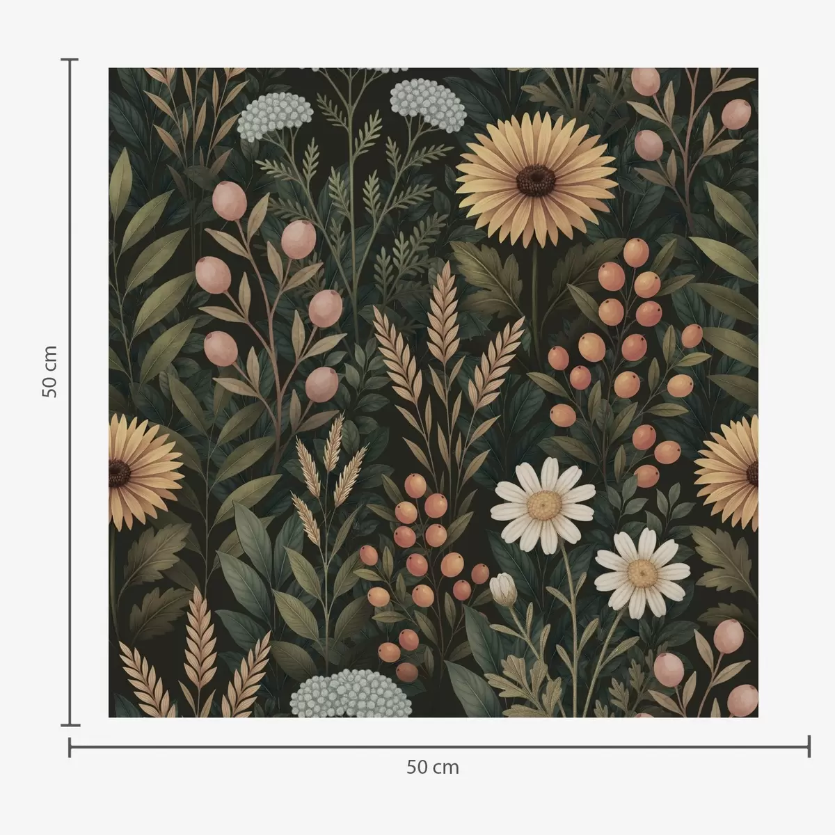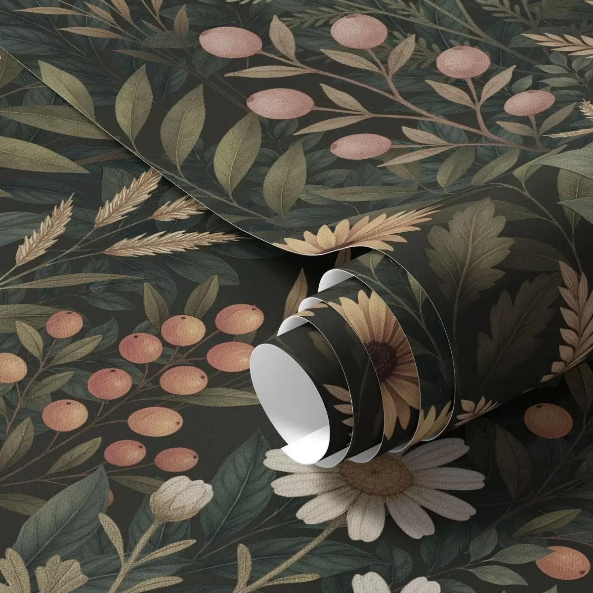 Tapeta Divlje cvijeće i bobice na tamnoj pozadini, prirodni ukras br. a00707