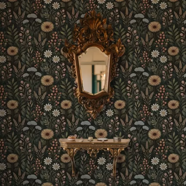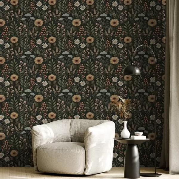 Tapeta Divlje cvijeće i bobice na tamnoj pozadini, prirodni ukras br. a00707
