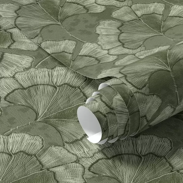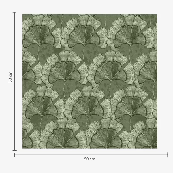 Tapeta Grafički uzorak s ginkom u hladnoj zelenoj paleti br. a00709