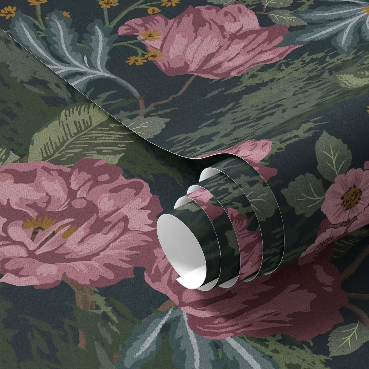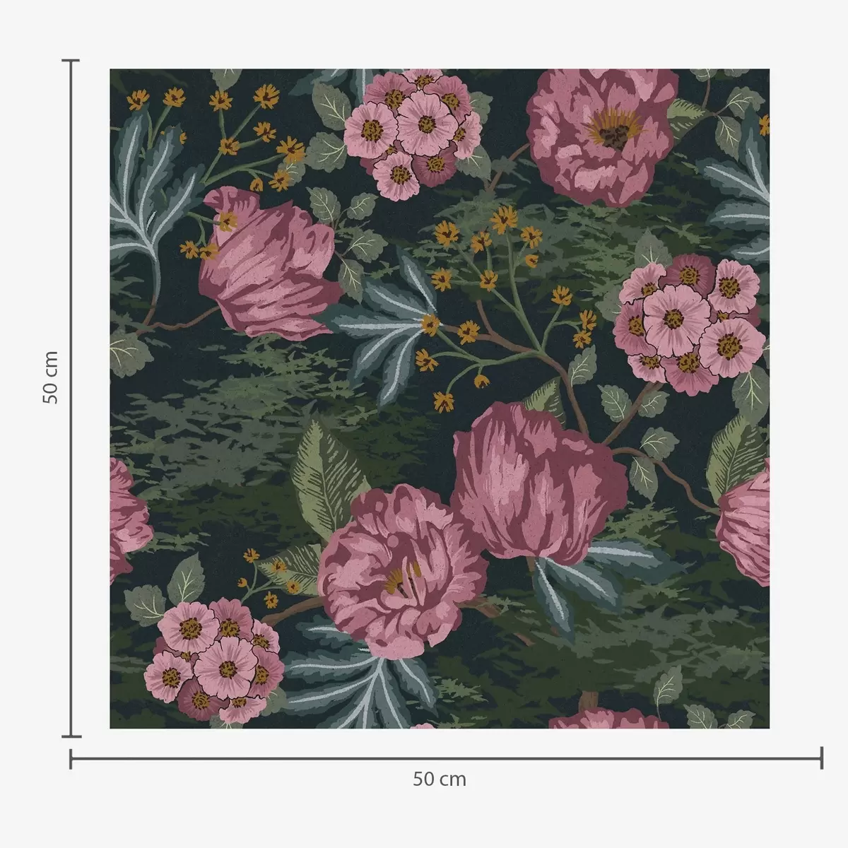 Tapeta Tamna flora s ružičastim cvijećem i lišćem, tamna pozadina br. a00724