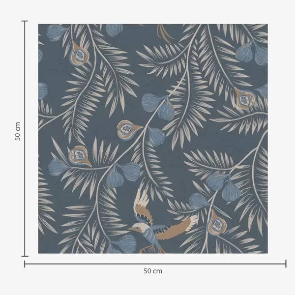 Tapeta Ptica među plavim voćem i palminim lišćem, indigo br. a00726
