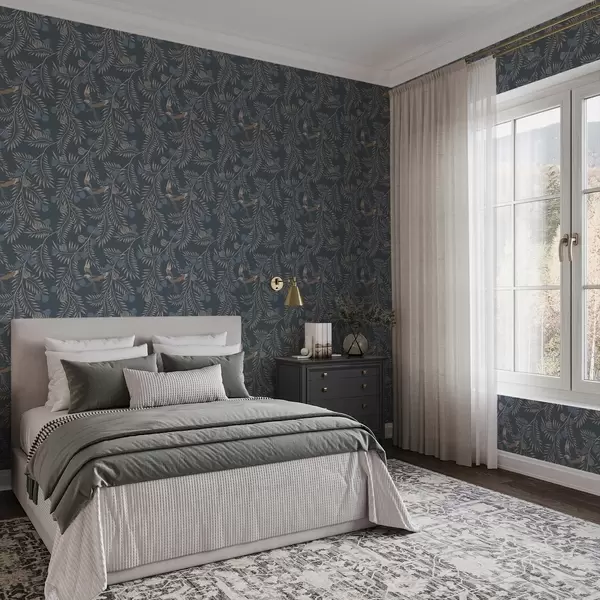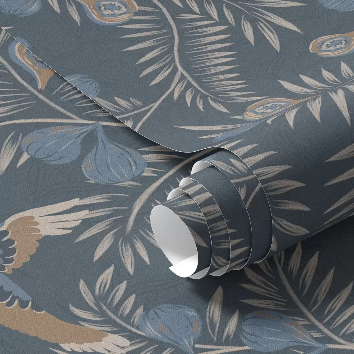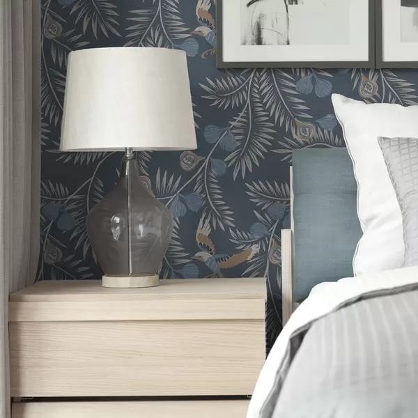 Tapeta Ptica među plavim voćem i palminim lišćem, indigo br. a00726