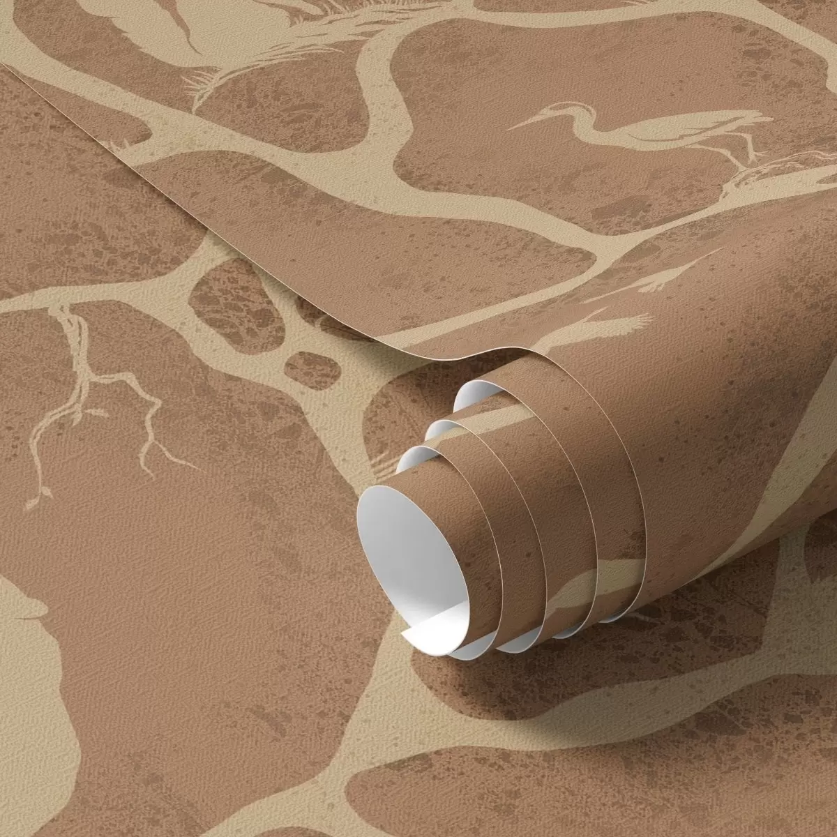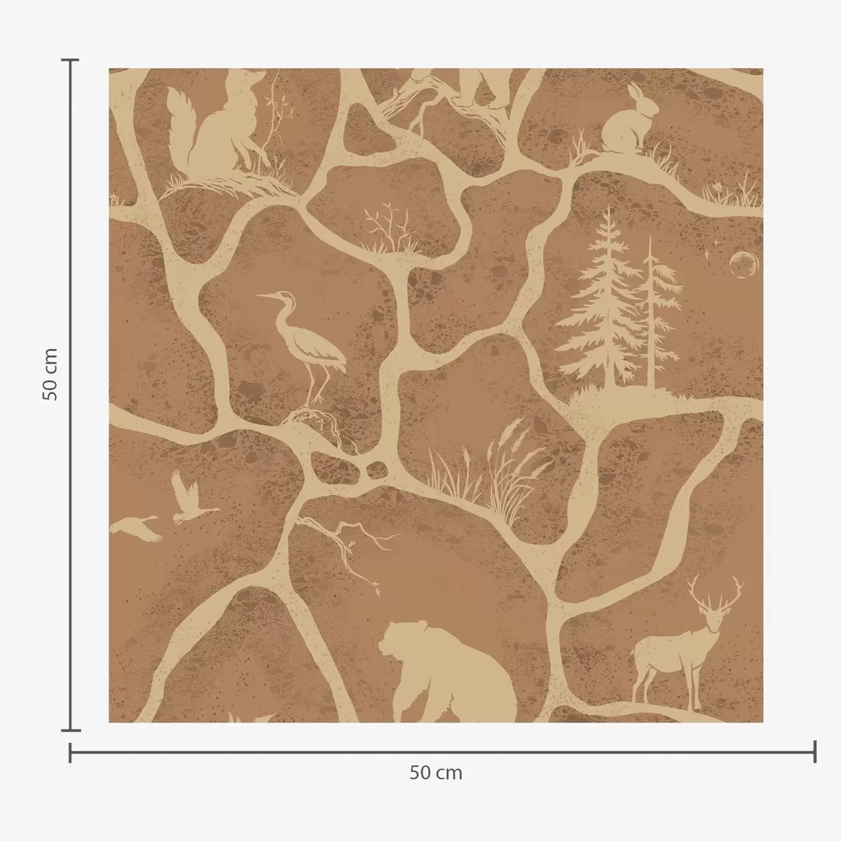 Tapeta Siluete životinja i drveća u prirodnom krajoliku s teksturom kamena br. a00727