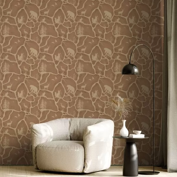 Tapeta Siluete životinja i drveća u prirodnom krajoliku s teksturom kamena br. a00727