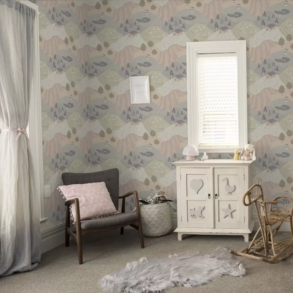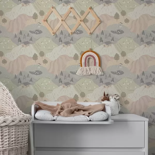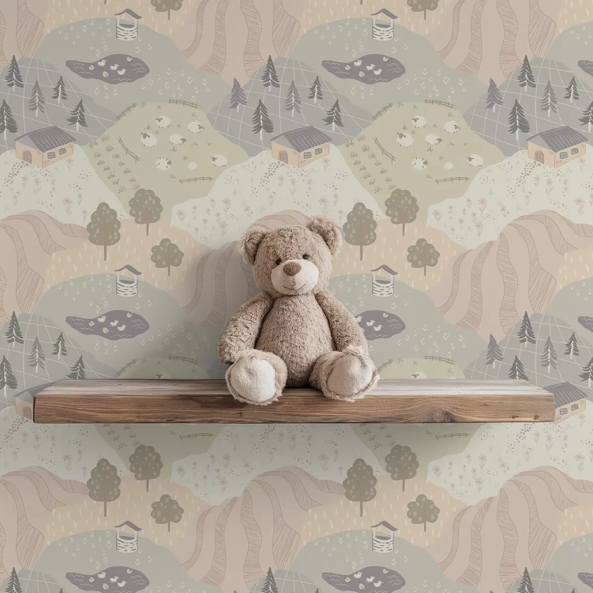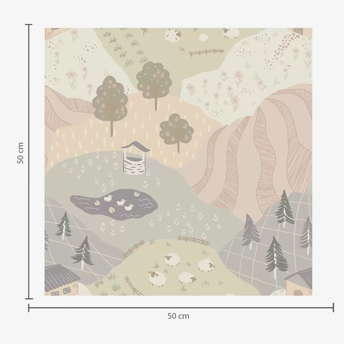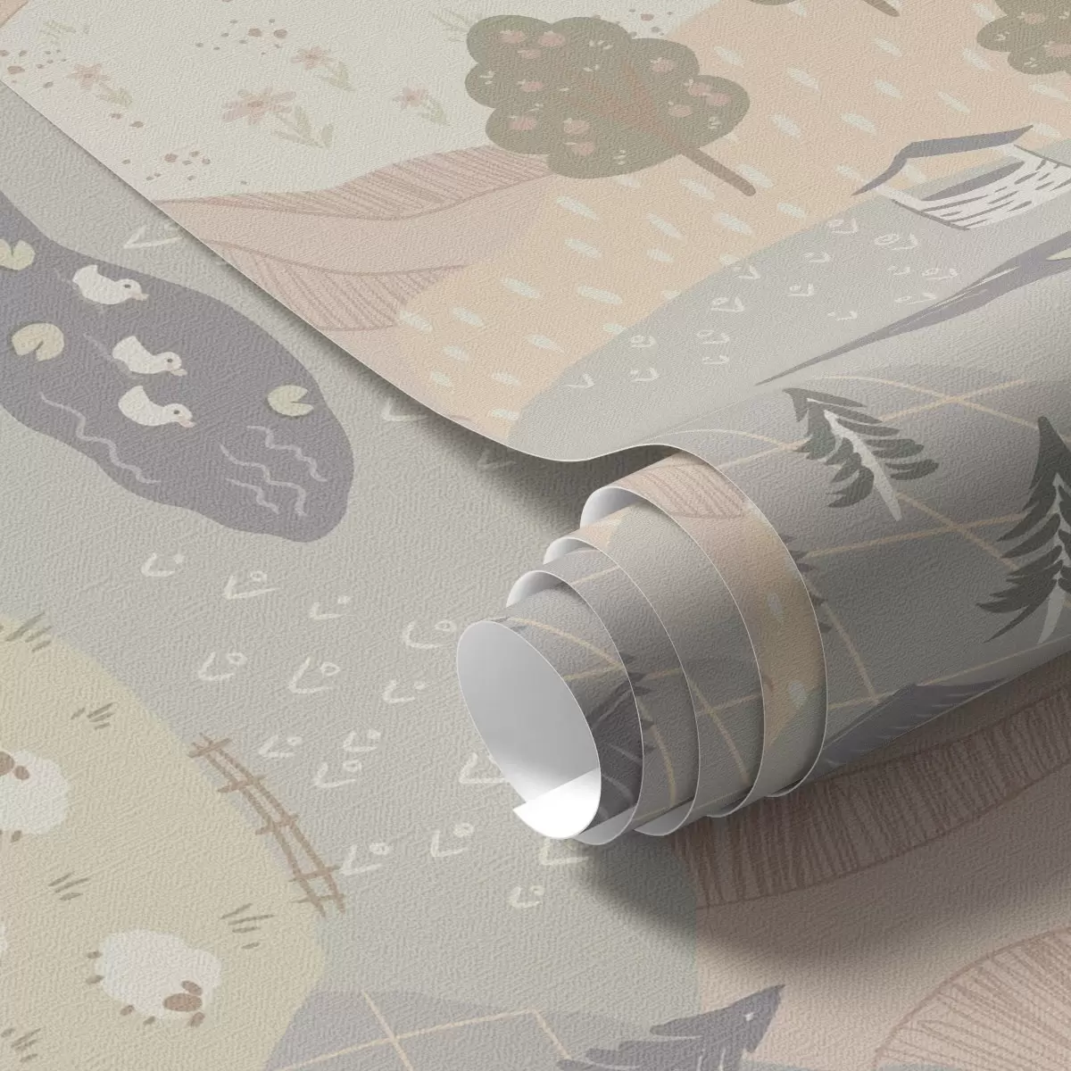 Tapeta Bajkoviti krajolik s drvećem, guskama i ovcama br. a00728