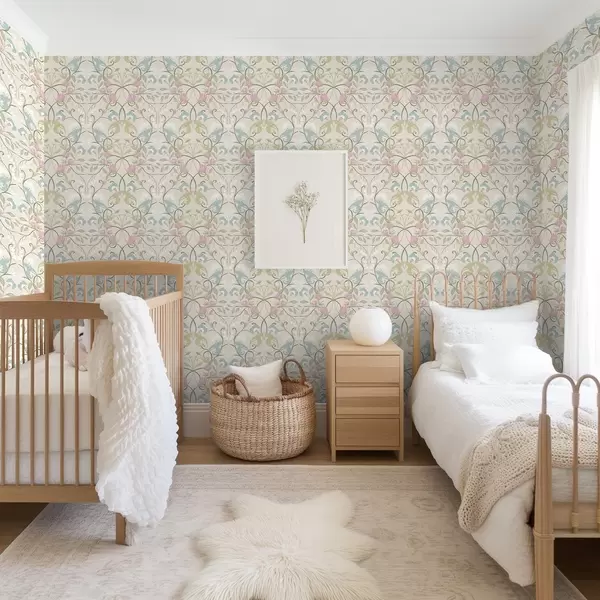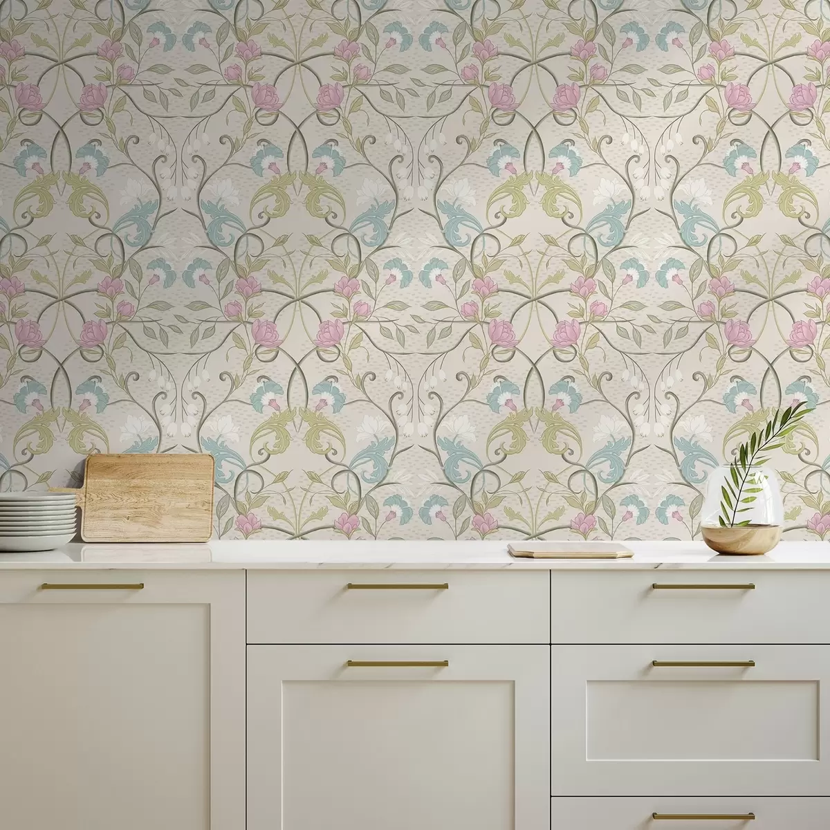 Tapeta Elegantni cvjetni uzorak s ružičastim i plavim cvijećem br. a00730