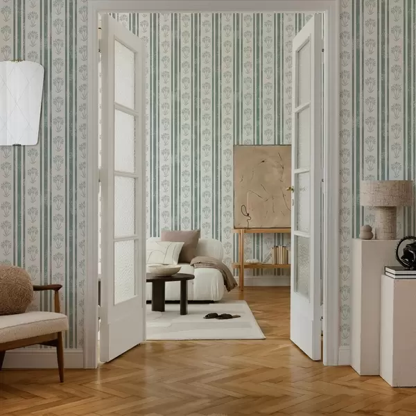Tapeta Uzorak vrpce s cvijećem u zelenim nijansama br. a00732