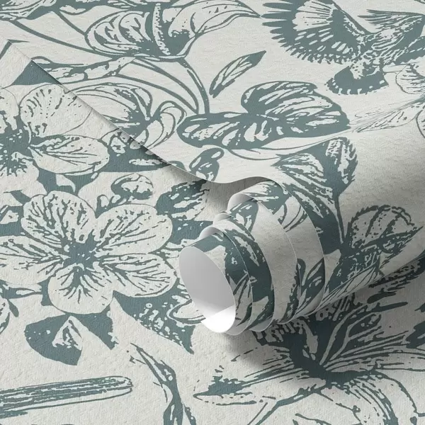 Tapeta Jednobojni cvjetni ornament s pticama br. a00737