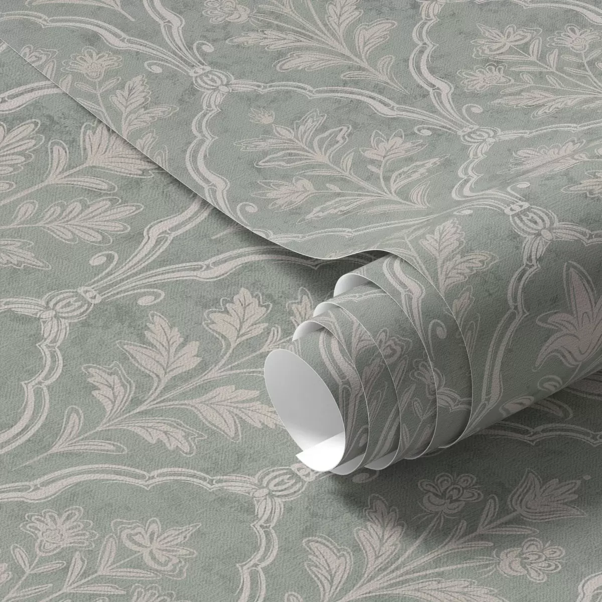 Tapeta Damask boje mente s finim cvjetnim medaljonima br. a00741